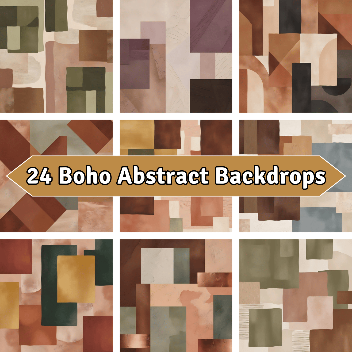Boho Abstract Backdrops - Set of 24 Geometric Backgrounds in Warm Tones