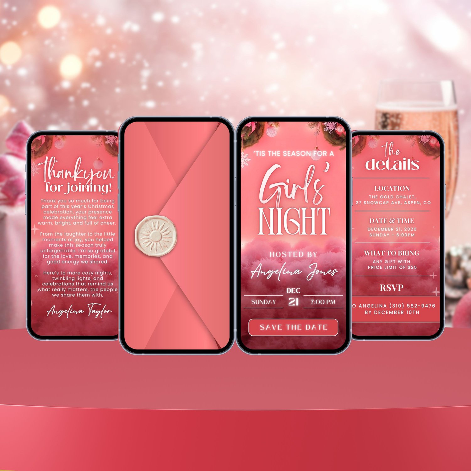 ⭐ Girls’ Night Christmas Party Invitation | Animated Christmas Envelope Template with 4 Editable Mobile Canva Pages ⭐