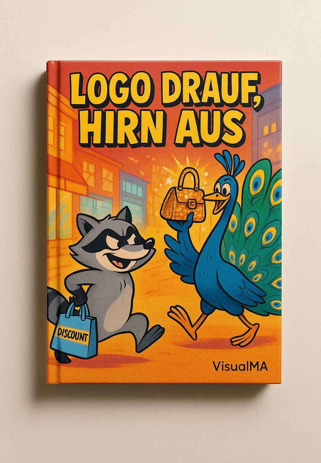 Jede Seite ist eine liebevoll illustrierte Pointe über Markenwahn, Statussymbole und die Frage: „Braucht man wirklich das Logo, um glücklich zu sein?“