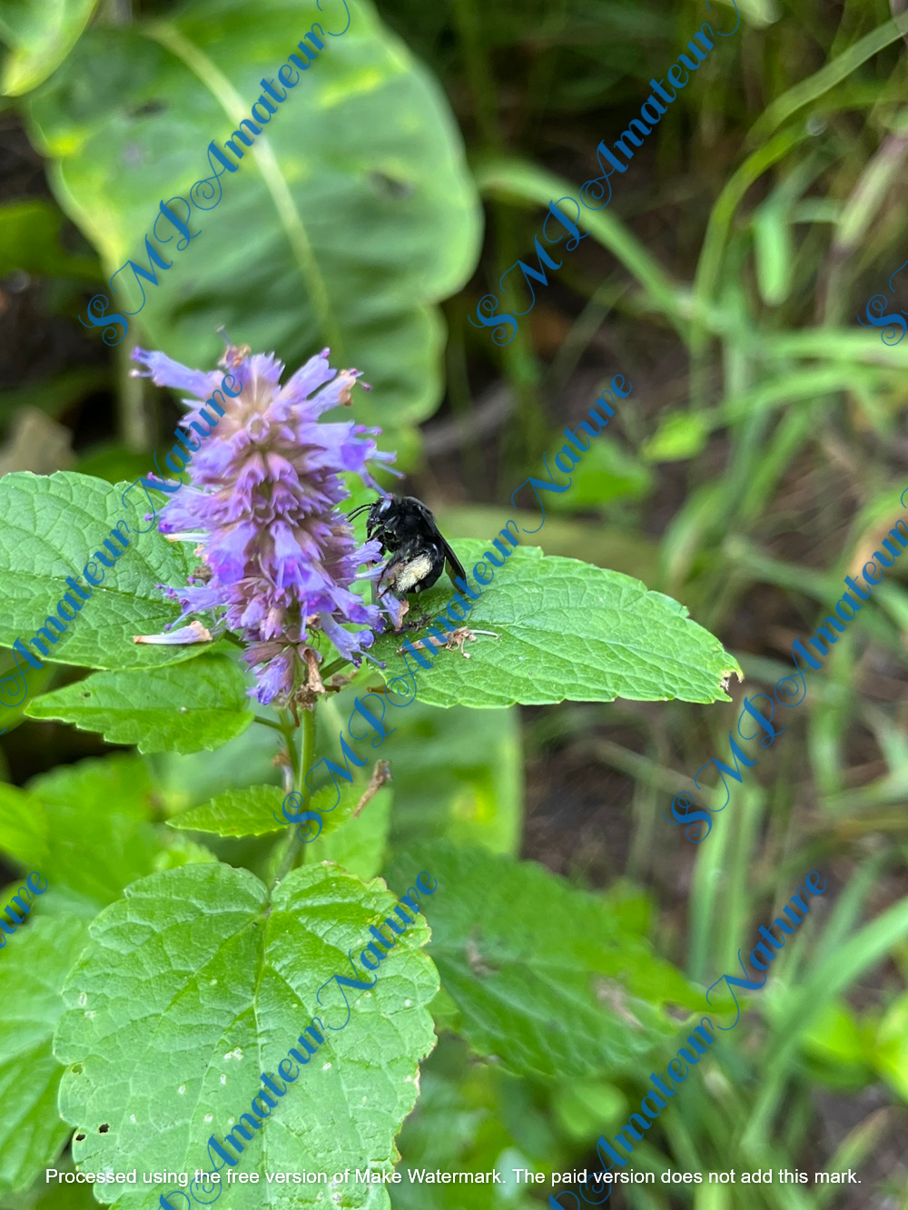 Amateur photograph of a Two-Spotted Longhorn Bee (Melissodes bimaculatus) foraging on Hyssop flowers. Image taken in Virginia, USA. Image pixels 3024x4032. Image easily resized as required for buyer needs. Purchase gives image without any watermark.