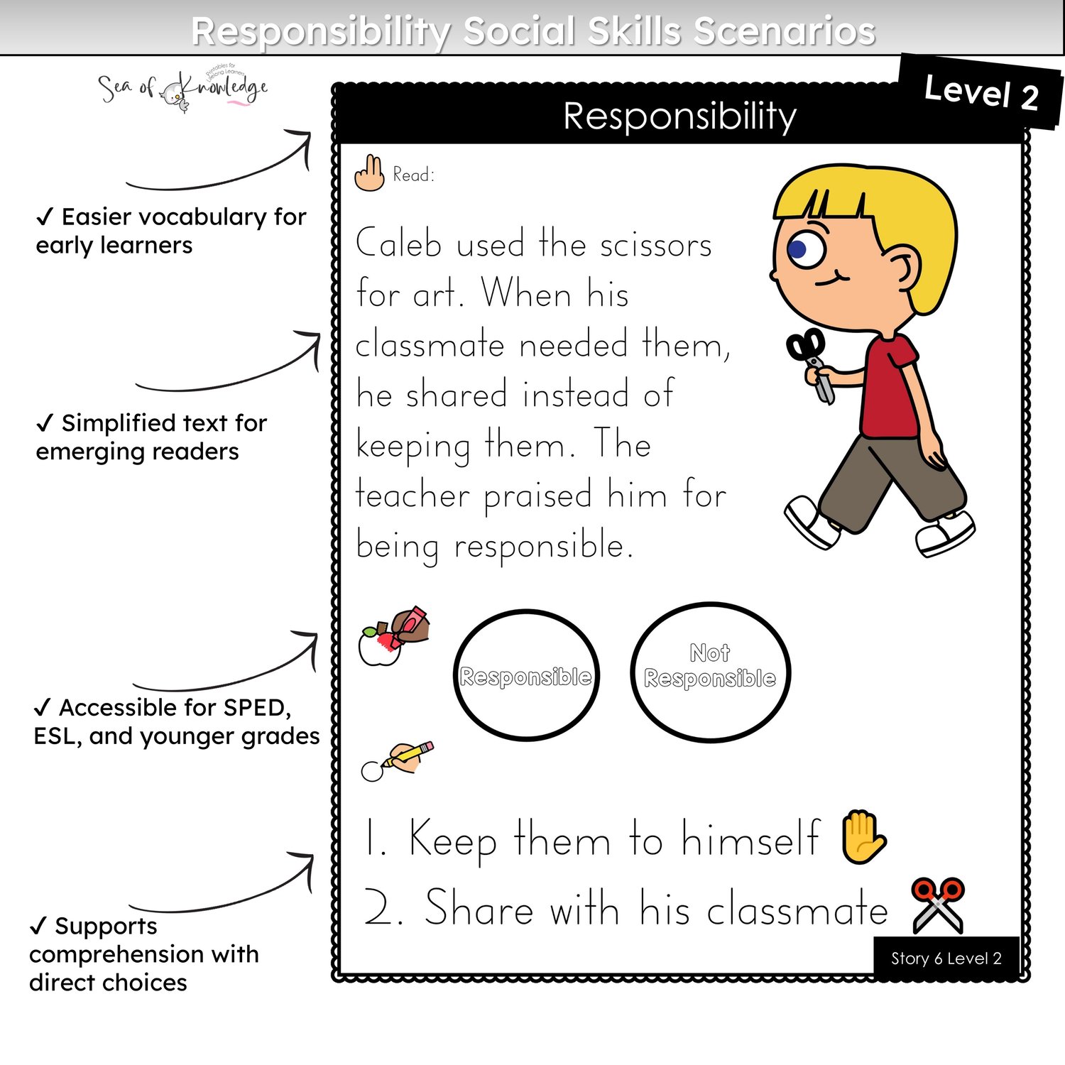 Responsibility Social Skills Scenarios | SEL Lessons & Worksheets for Kids
