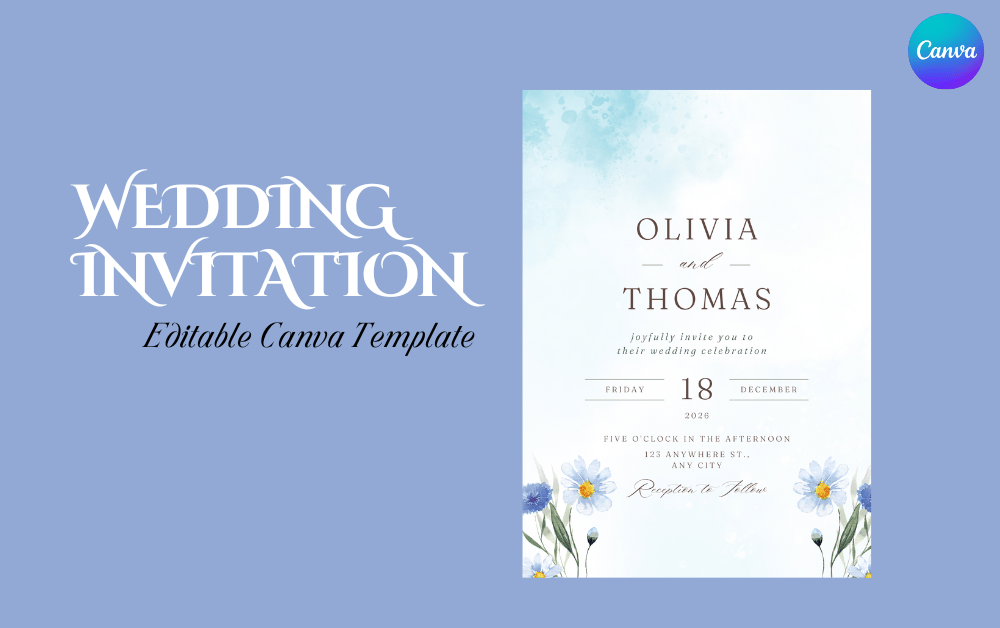 Floral Watercolor Wedding Invitation – Editable Canva Template