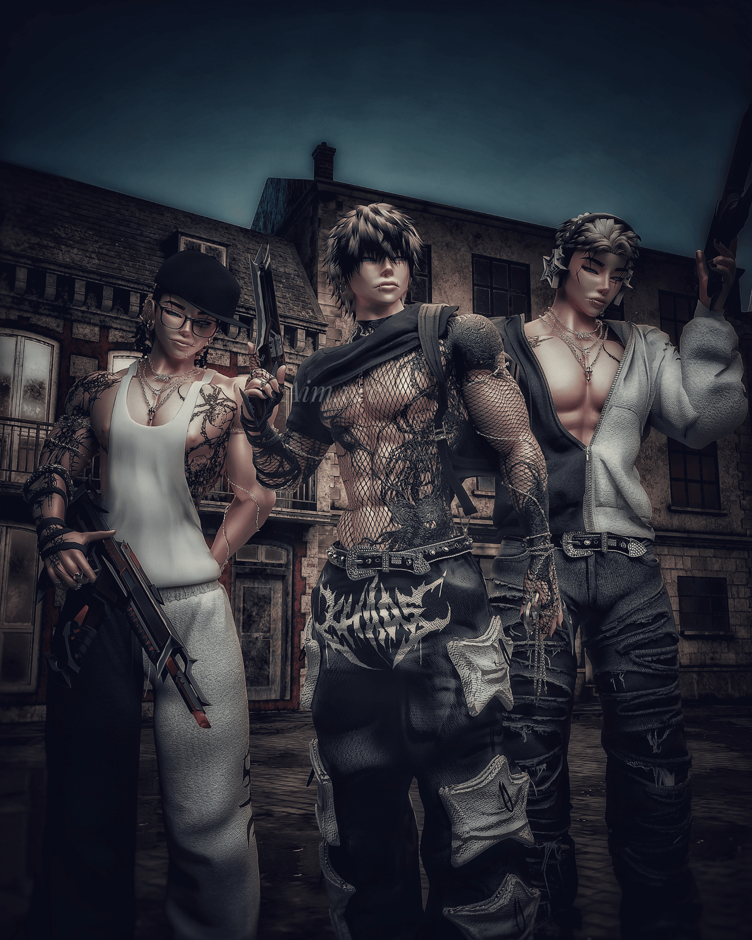 ✩ arm and leg wraps ✩ chunky belt ✩ Mouth Chain ✩ Glasses ✩ Hand Chain ✩ Hat ✩ Headphones ✩ Necklace ✩ Rings ✩ Sovi Ears ✩ Star Backpack ✩ Wire Chains ✩ Aki Base ✩ Dean Head ✩ Human Ears ✩ Eye Tex ✩ Face Scars ✩ Boxers ✩ Daaze Pants ✩ Fishnets ✩ Ripped Jeans ✩ Shorts ✩ Star Pants ✩ Sweat Suit ✩ Hairs ✩ Locs ✩ Air90s ✩ ChunkySneakers ✩ Jordan 4 ✩ Socks ✩ Harness ✩ Ripped Sweater ✩ Shirt ✩ Stringer ✩ T-shirt ✩ Tank Top + Harness ✩ Tattoos ✩ Joint ✩ Wholesome Lollipop ✩