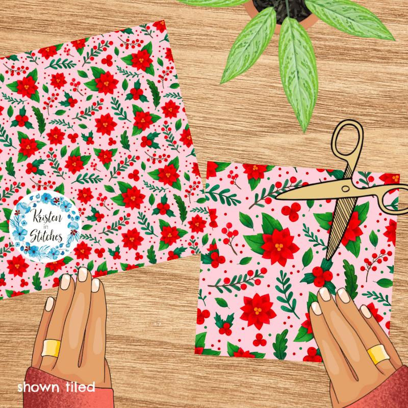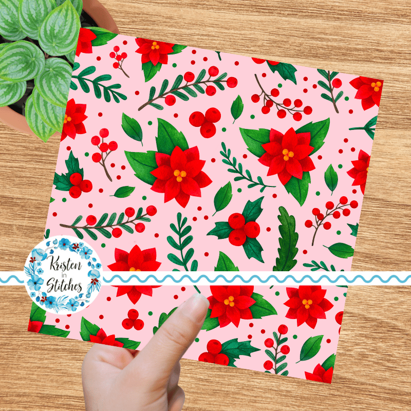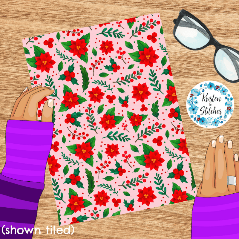 Christmas Poinsettia Flowers on Pink Seamless Pattern