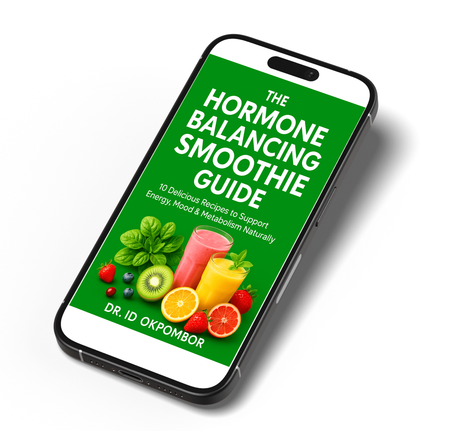 In The Hormone Balancing Smoothie Guide, Dr. ID Okpombor brings you 10 powerful, easy-to-make smoothie recipes designed to naturally support your body’s hormonal health.