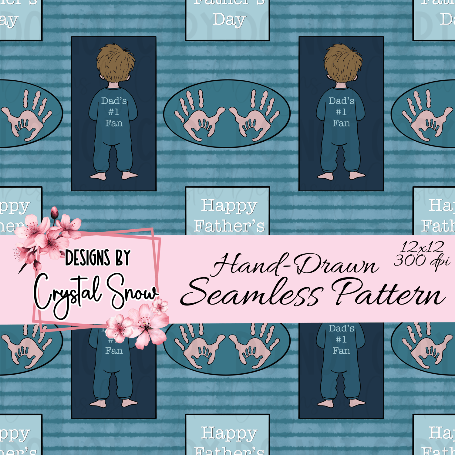 Show dad some love with this heartfelt seamless pattern featuring a little boy in pajamas that say “Dad’s #1 Fan” 💙