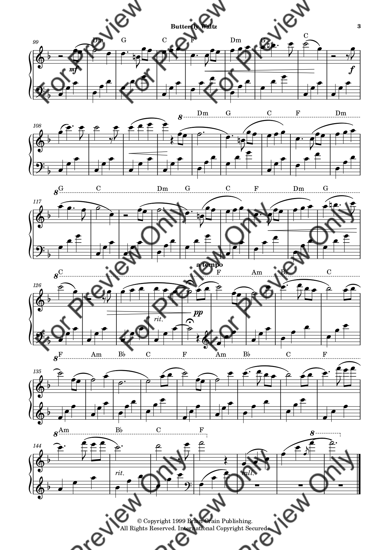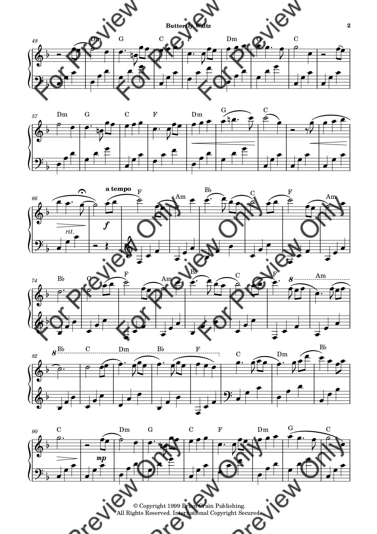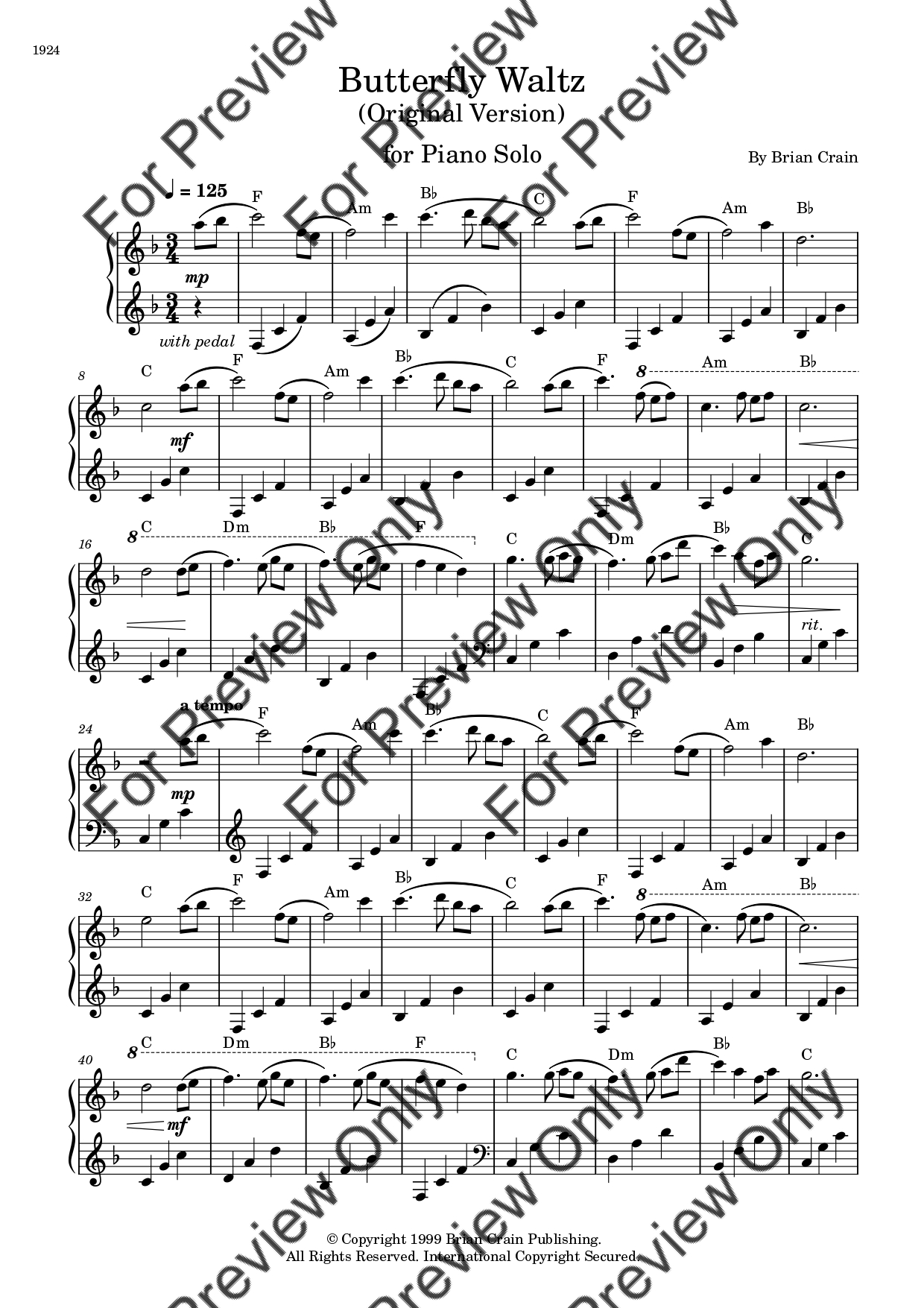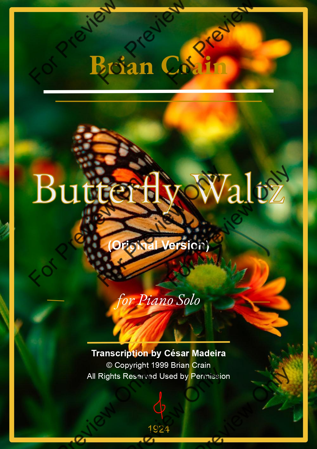 Butterfly Waltz by Brian Crain. Arrangement for Piano Solo. With Full Score. Have fun!