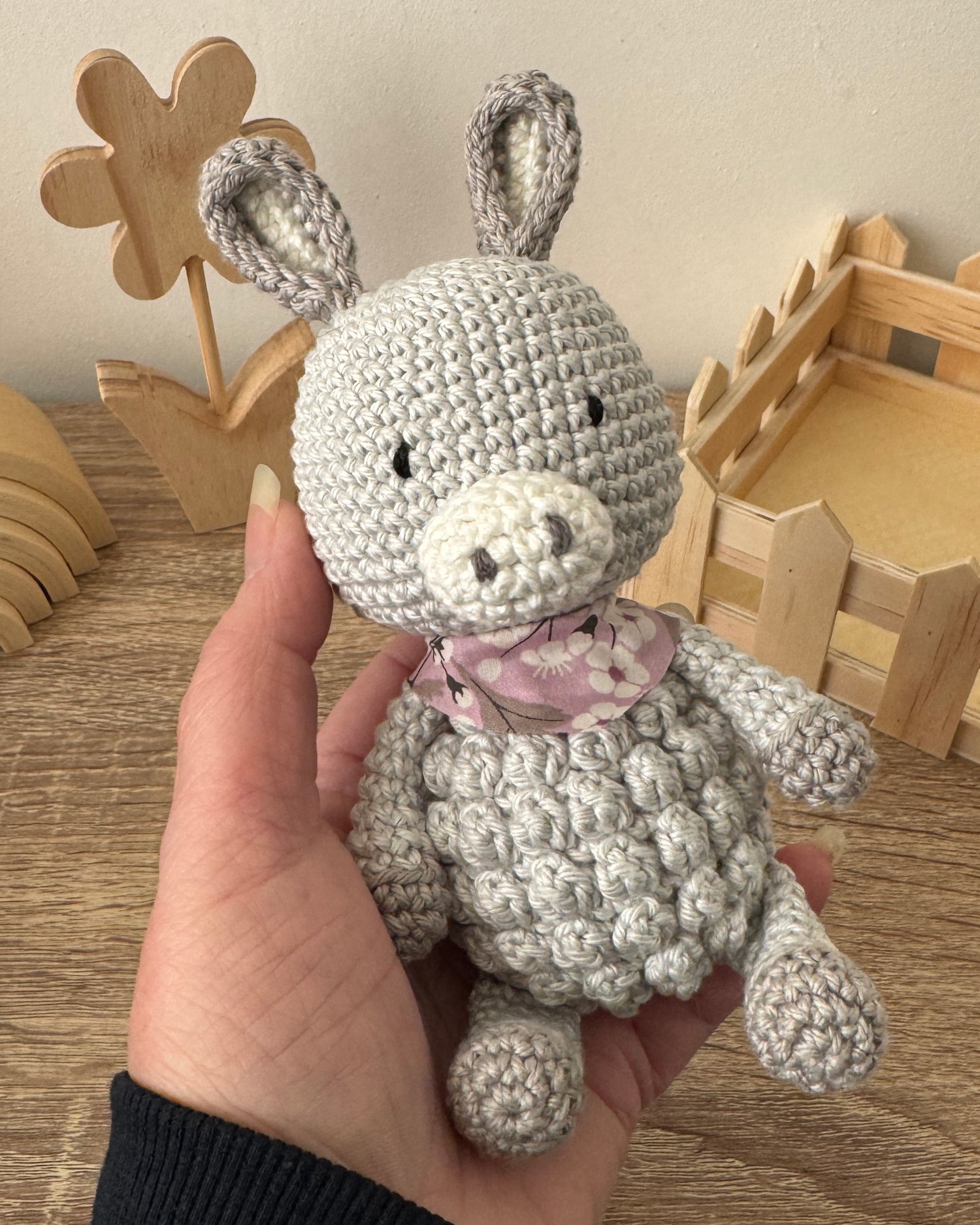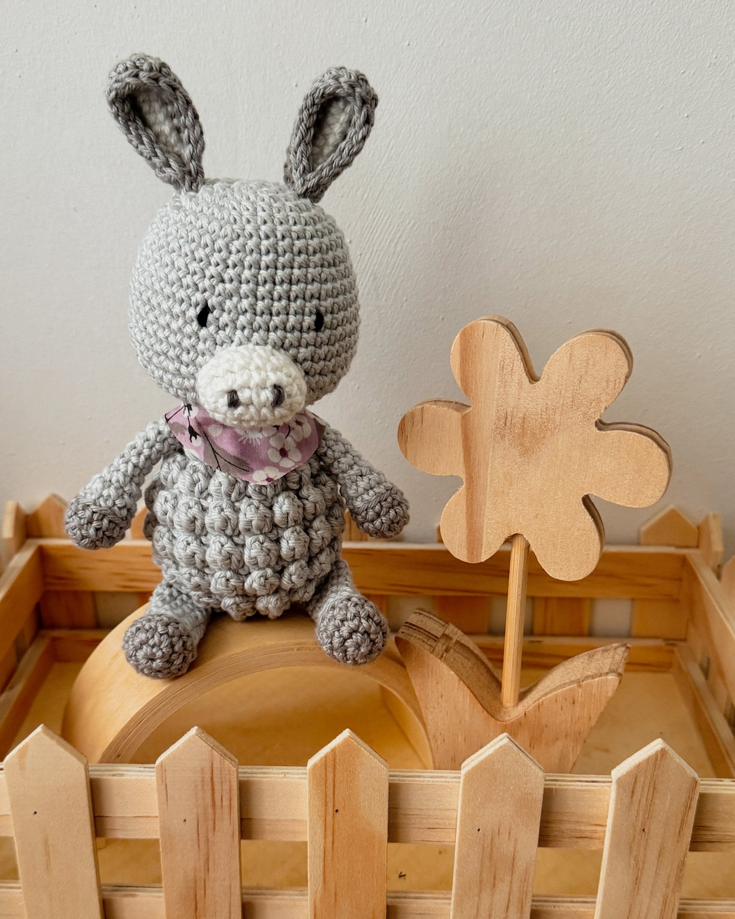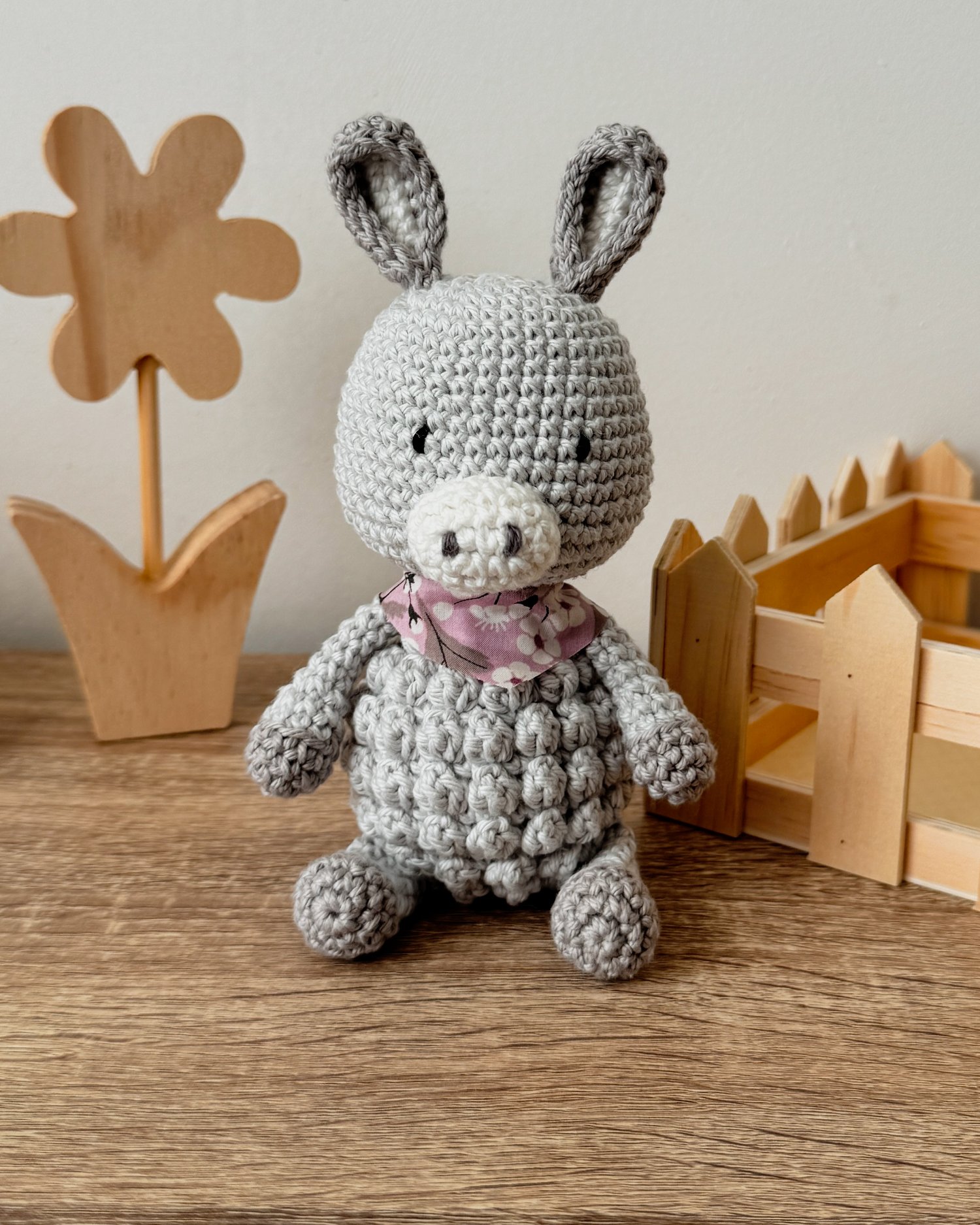 Avec ses longues oreilles délicates, son petit foulard et son regard apaisant, il incarne la douceur tranquille et la fidélité des compagnons de toujours.