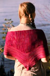 Triangulate is composed of two triangles with a chevron border; the shawl begins with a provisional cast on at the center, and is knit outwards in two triangular halves using short rows.