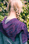 A new take on the ruffle shawl, Rufflebye is worked sideways in three garter stitch wedges which cleverly intersect to change the knitting direction. Increases and decreases create the shape from tip to tip, while two sets of short rows throughout form the crescent shape and the gently ruffled edging.