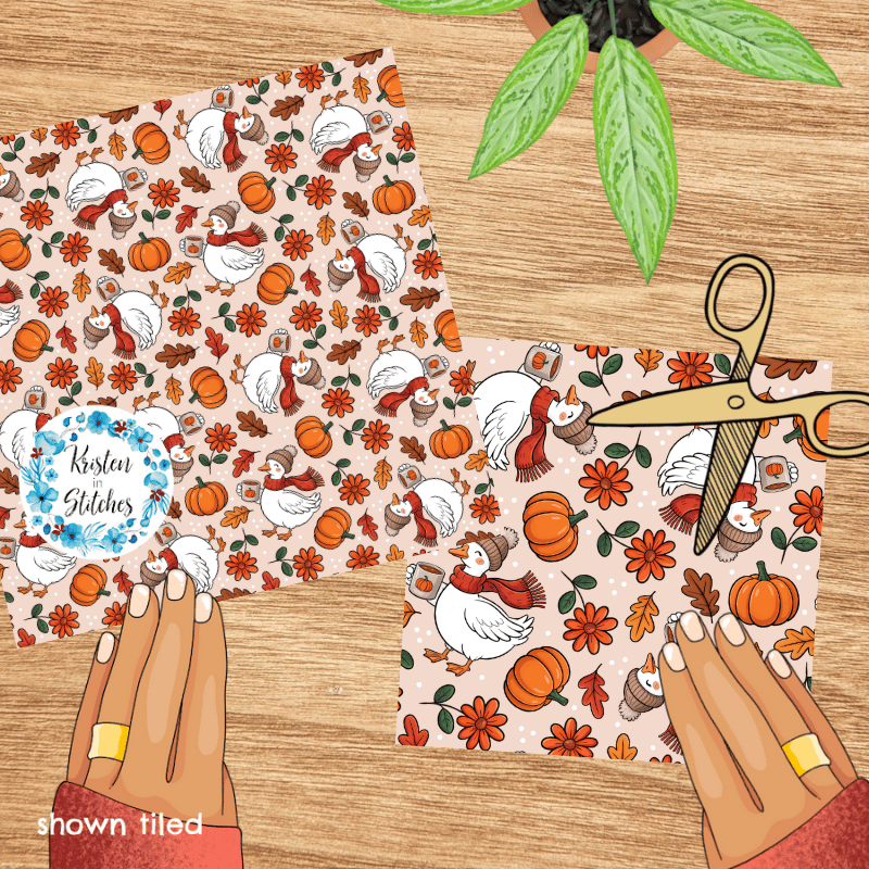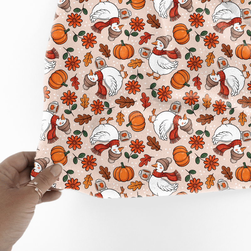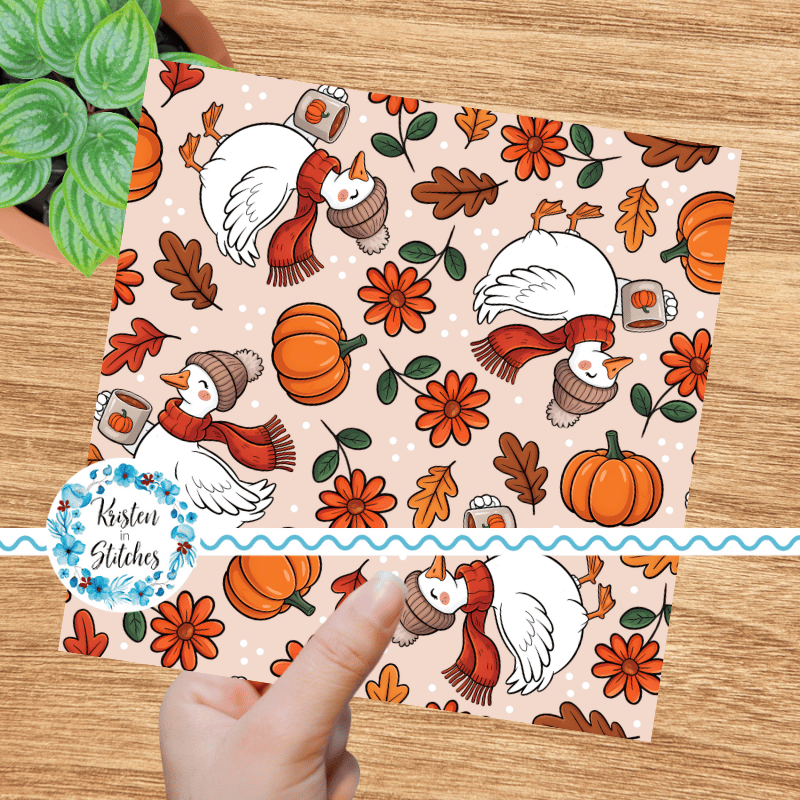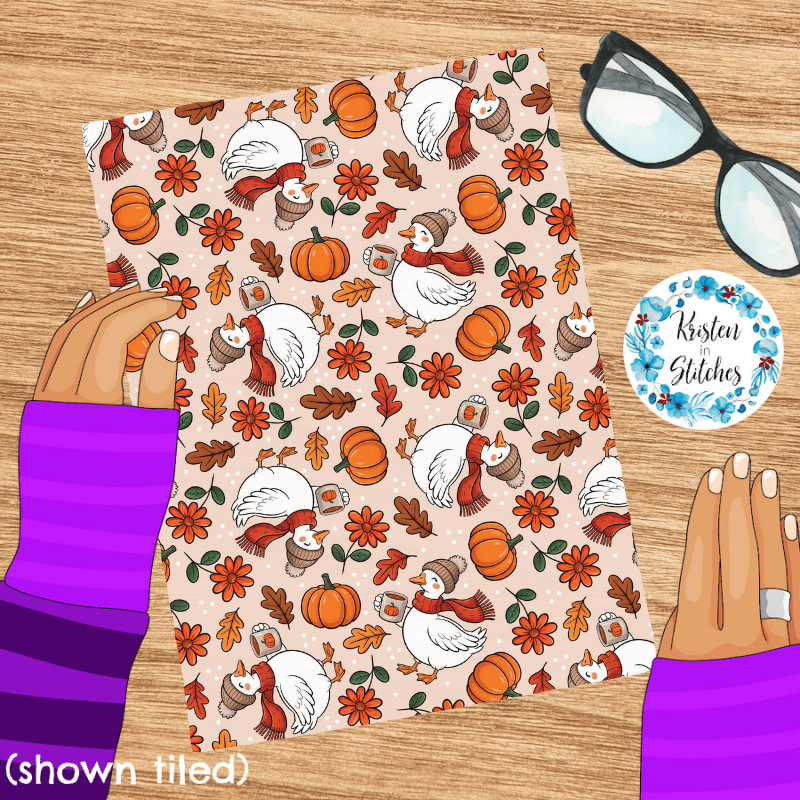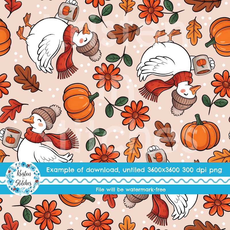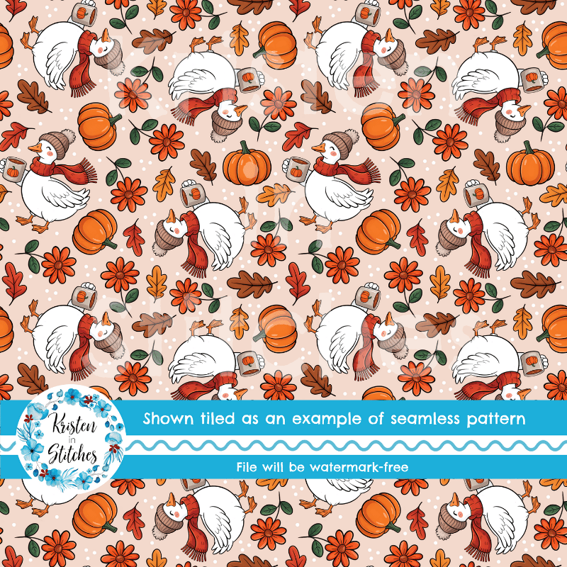 Thanksgiving Goose Seamless Pattern, Cozy Fall Autumn Pumpkins and Leaves