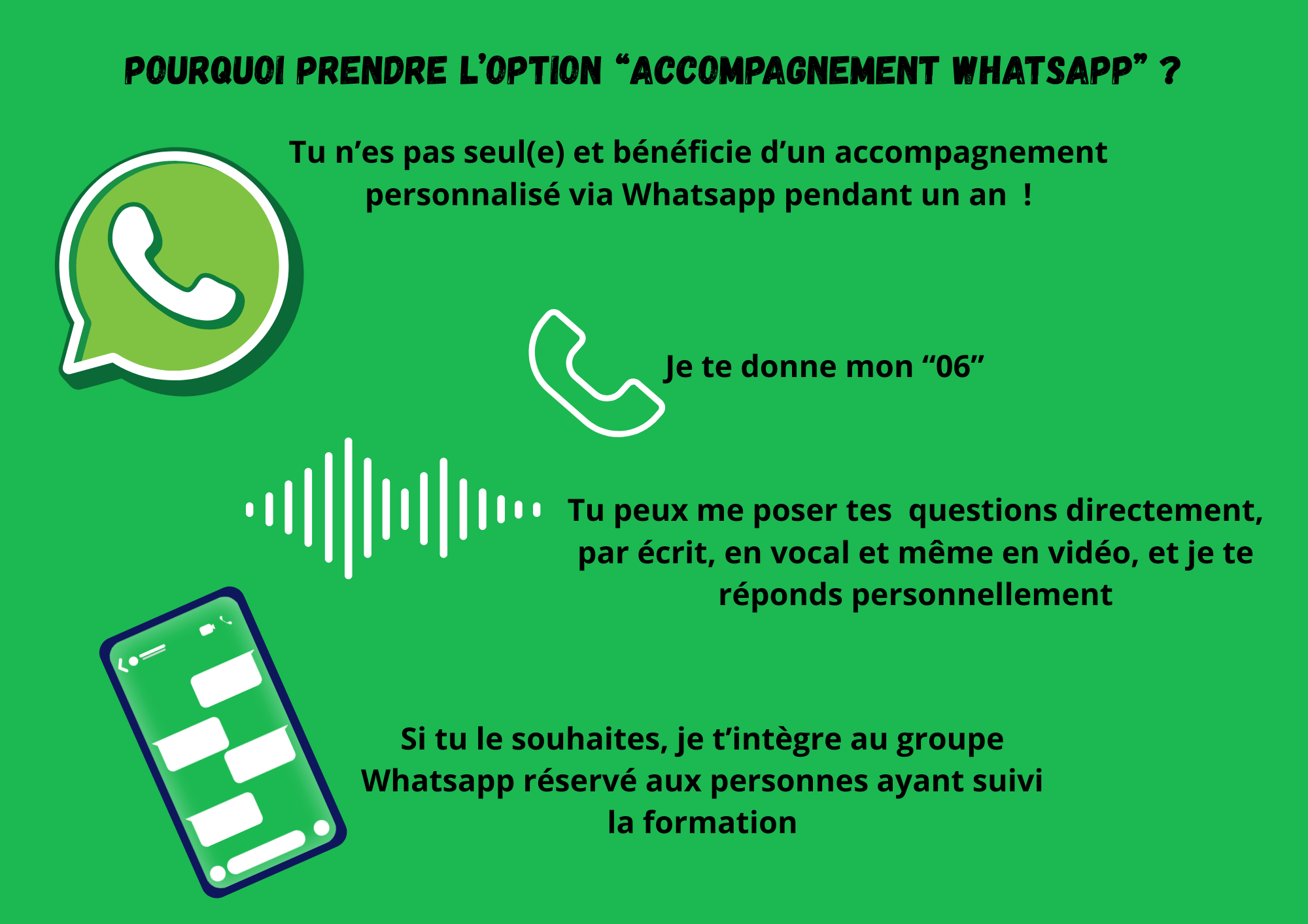 Voici un extrait de la dernière vidéo de la formation, où je te donne mon numéro de téléphone et t'explique comment fonctionne l'accompagnement Whatsapp !