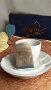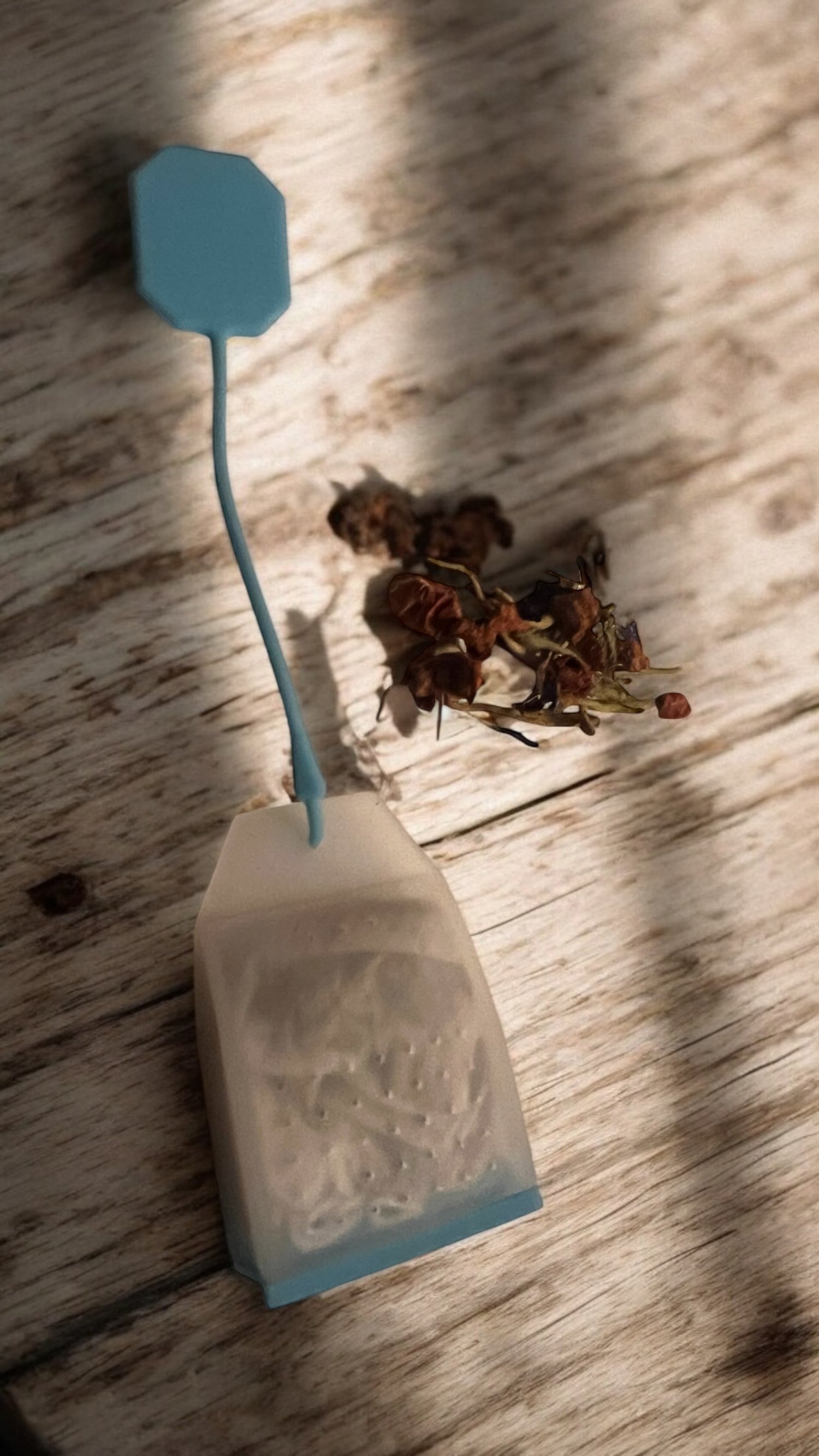 Each order includes five plant-filled tea bags plus one reusable tea bag protector designed to help keep the plant pieces from escaping into your cup while they steep.