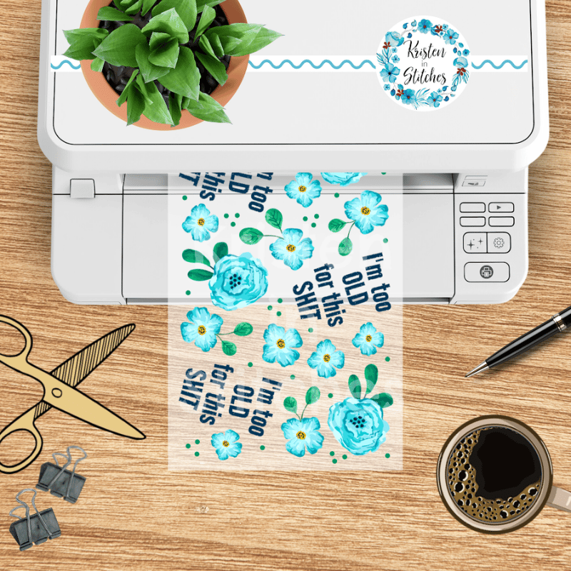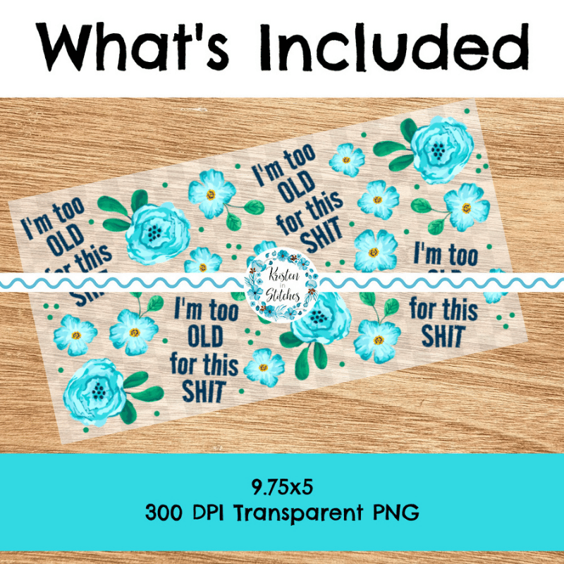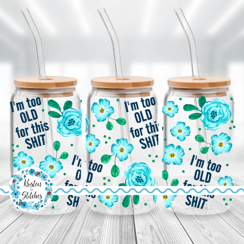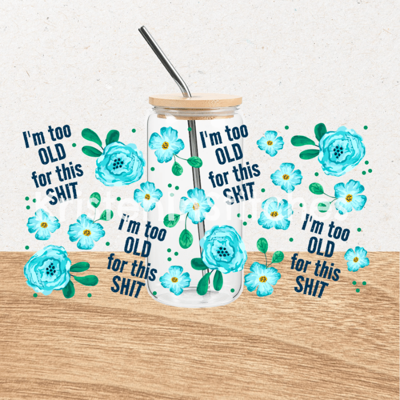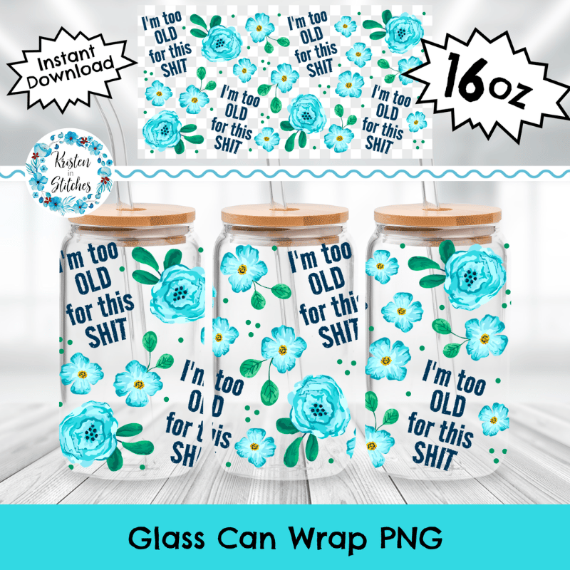 I'm Too Old For This Shit Glass Can Wrap Transparent Cup PNG, Pretty Floral Profanities