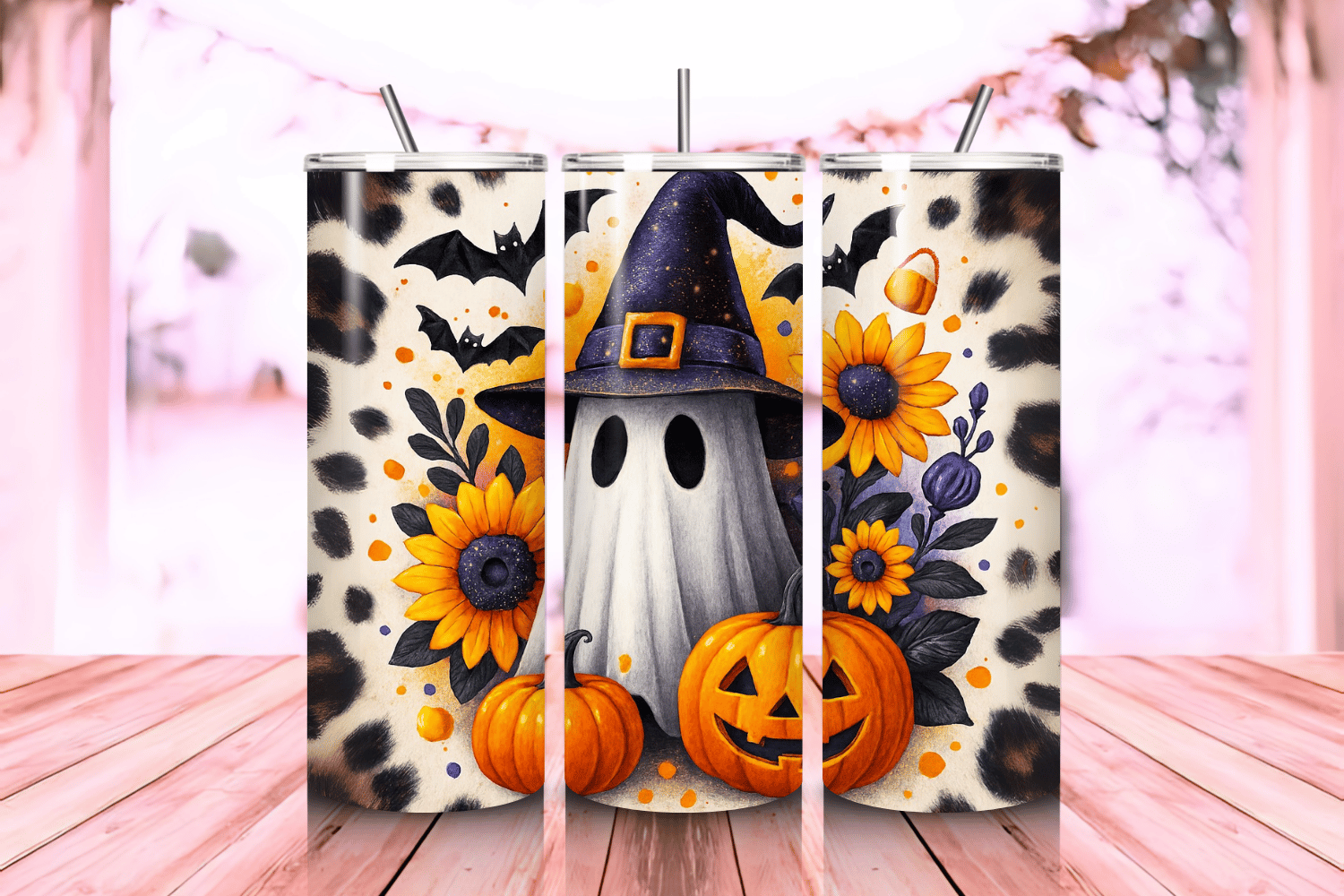 Ghost Halloween Tumbler Wrap PNG – 20oz Skinny Sublimation Design with Spooky Cute Ghost Artwork & Festive Autumn Theme – 300 DPI Instant Digital Download
