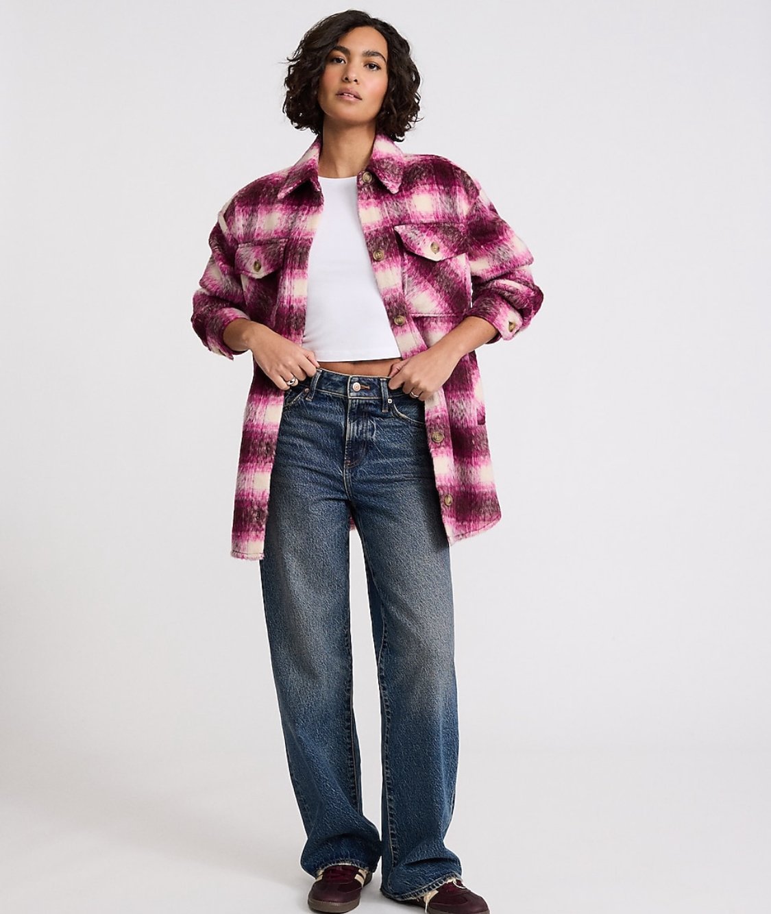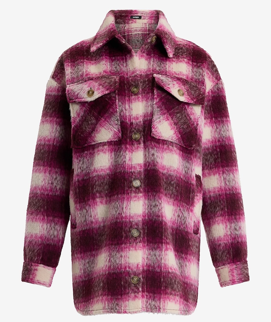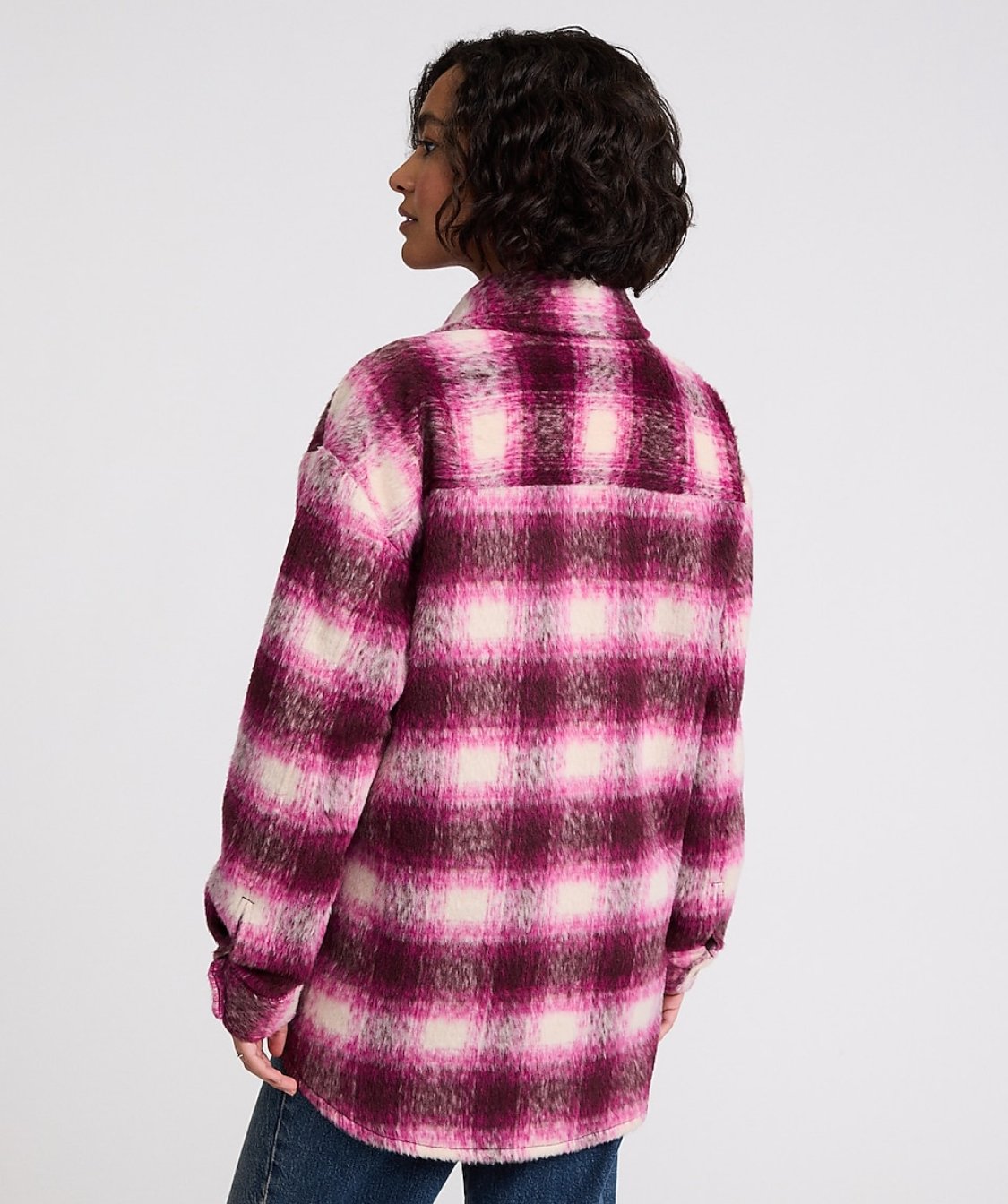 PINK PRINT PLAID OVERSIZED DOUBLE POCKET JACKET