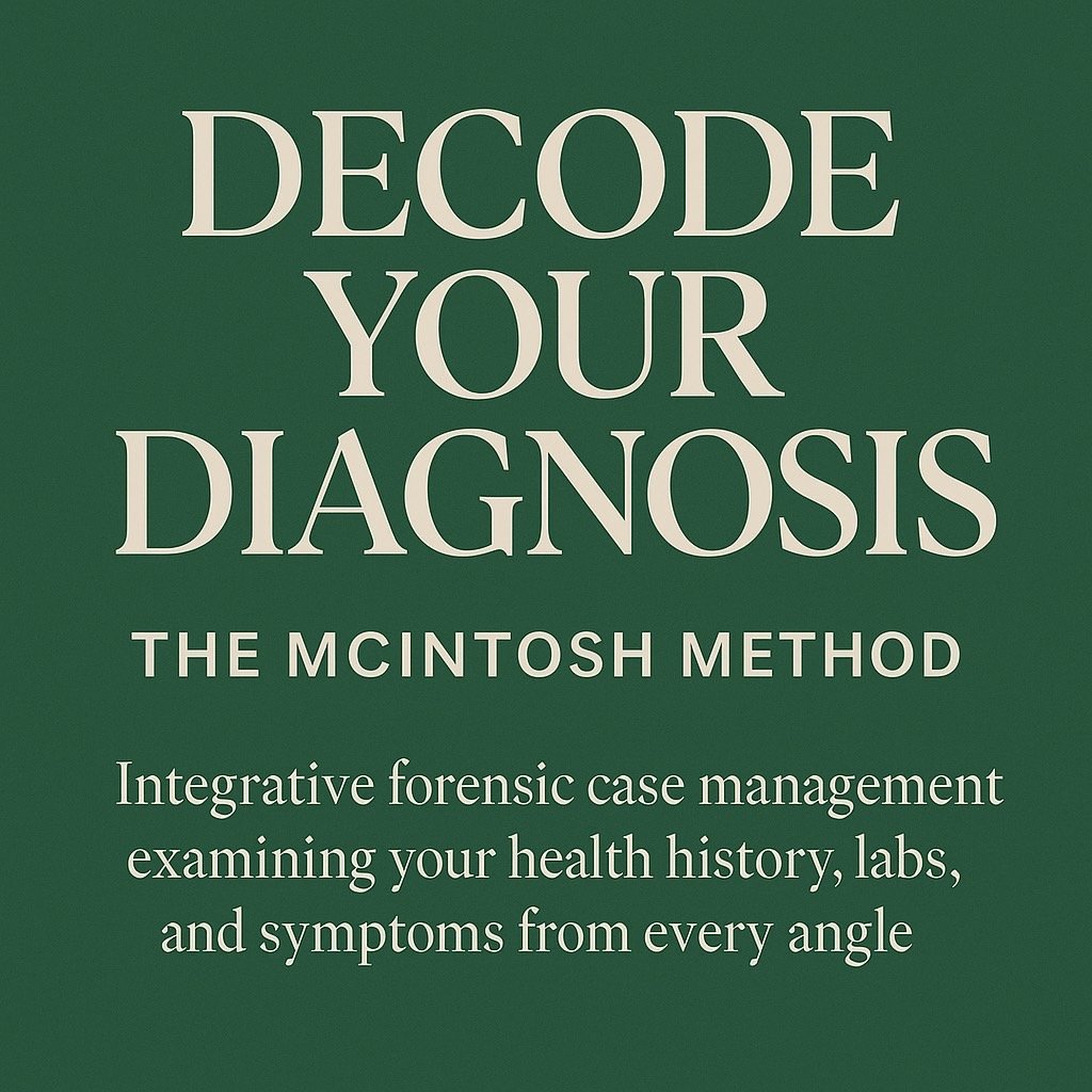 Rooted in years of deep, case-based guidance, integrative biology and The McIntosh Method—designed to uncover root causes, decode your symptoms, and restore clarity to your healing path.