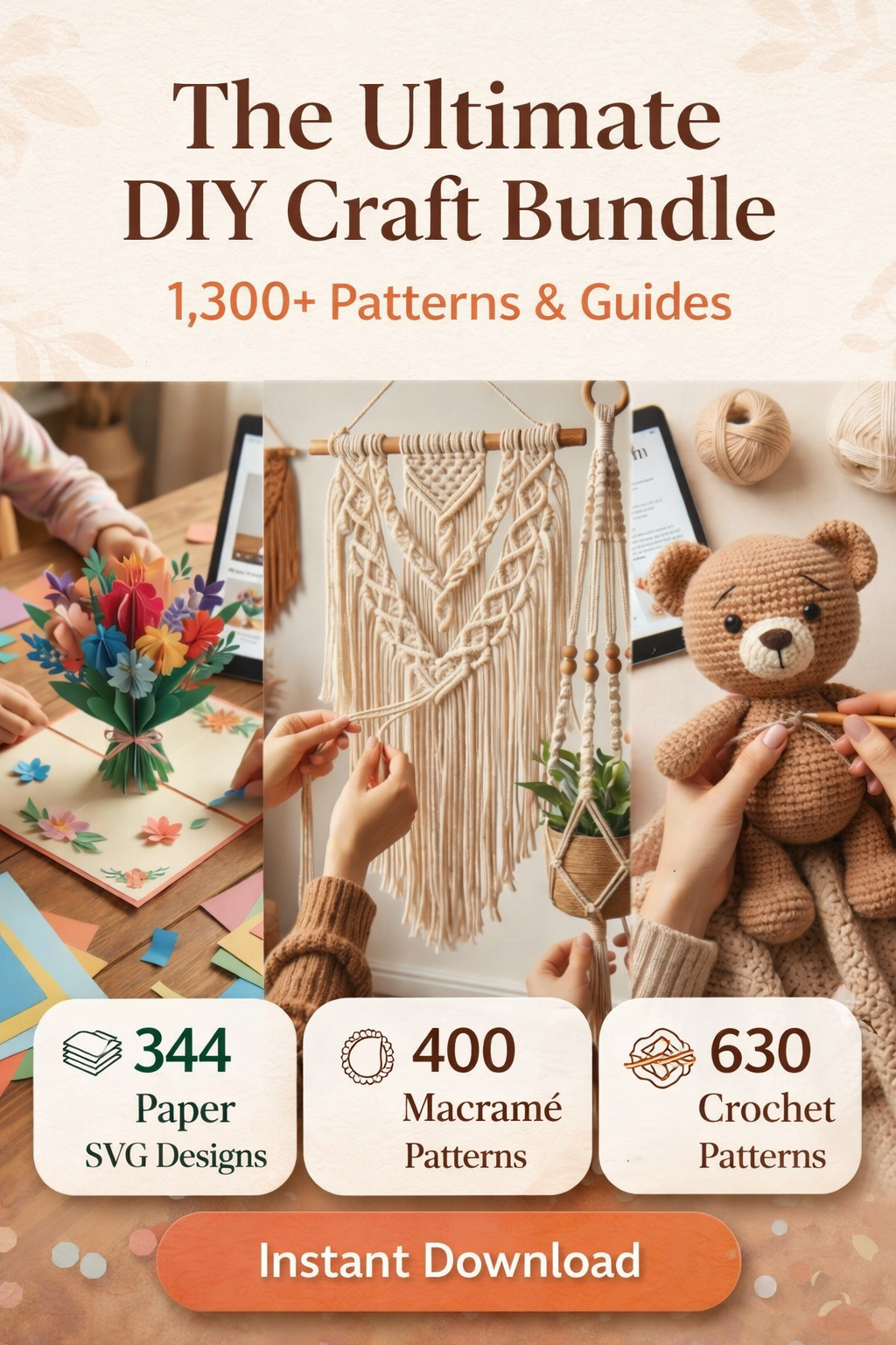 Ultimate DIY Craft Bundle – 1300+ Patterns for Paper, Macramé & Crochet