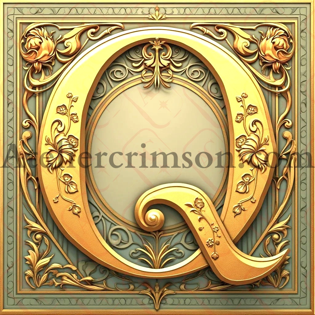 The letter Q gold metal art nouveau Download Now this high quality AI-generated image, perfect for adding a touch of tranquility and creativity to any space.