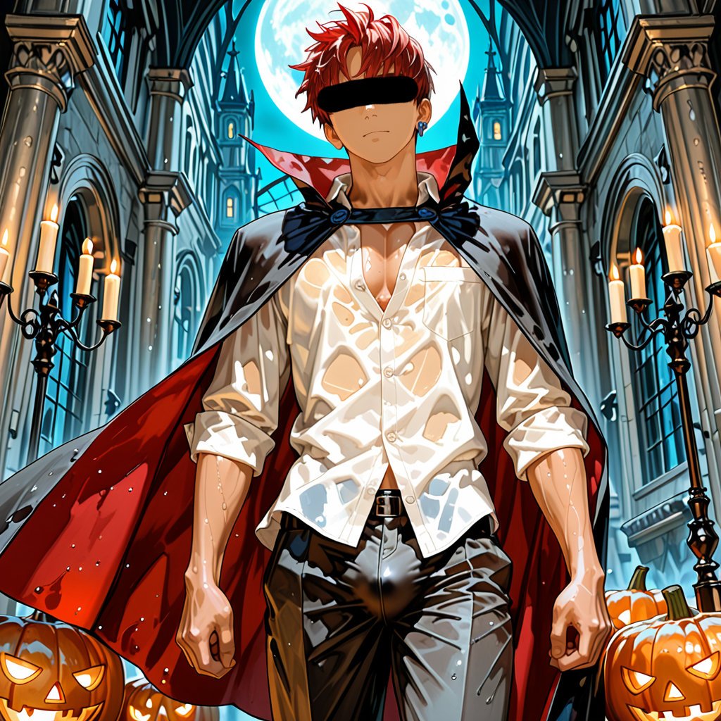 サウナで「ハロウィン」をテーマに、ヴァンパイアの男らしいキャラクターの魅力を思い切って表現しました。