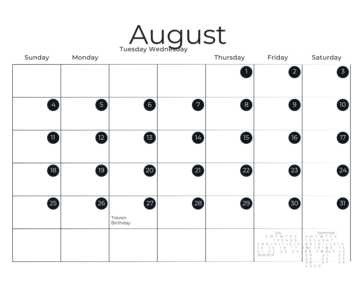 These calendars are great for staying organized! They include monthly and notes The month and day pages come blank, so you can fill them in, and start on whatever month and day you choose!