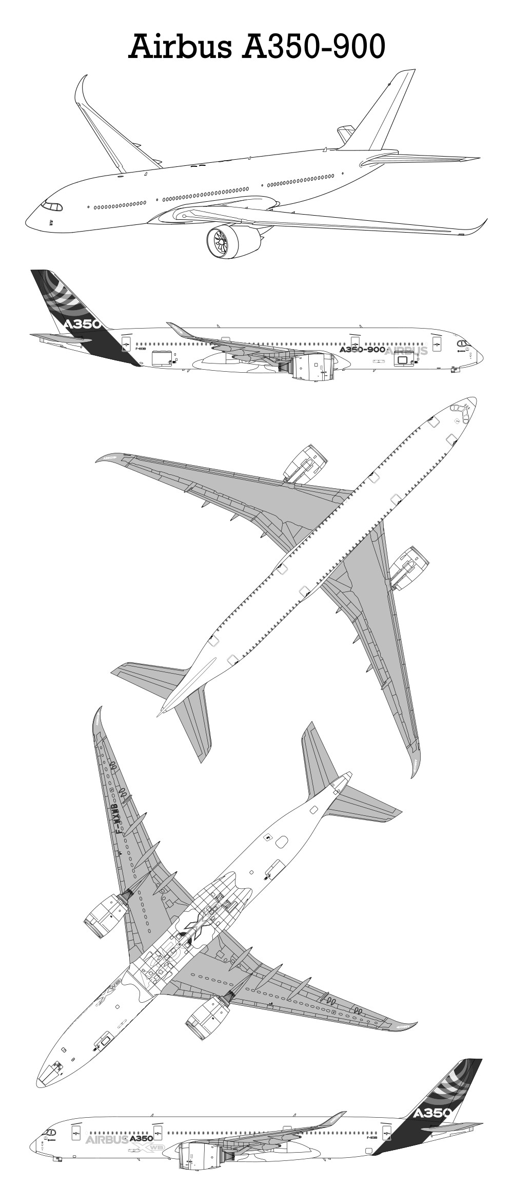 Airbus A350-900 ِBlueprint PDF SVG Vector File.