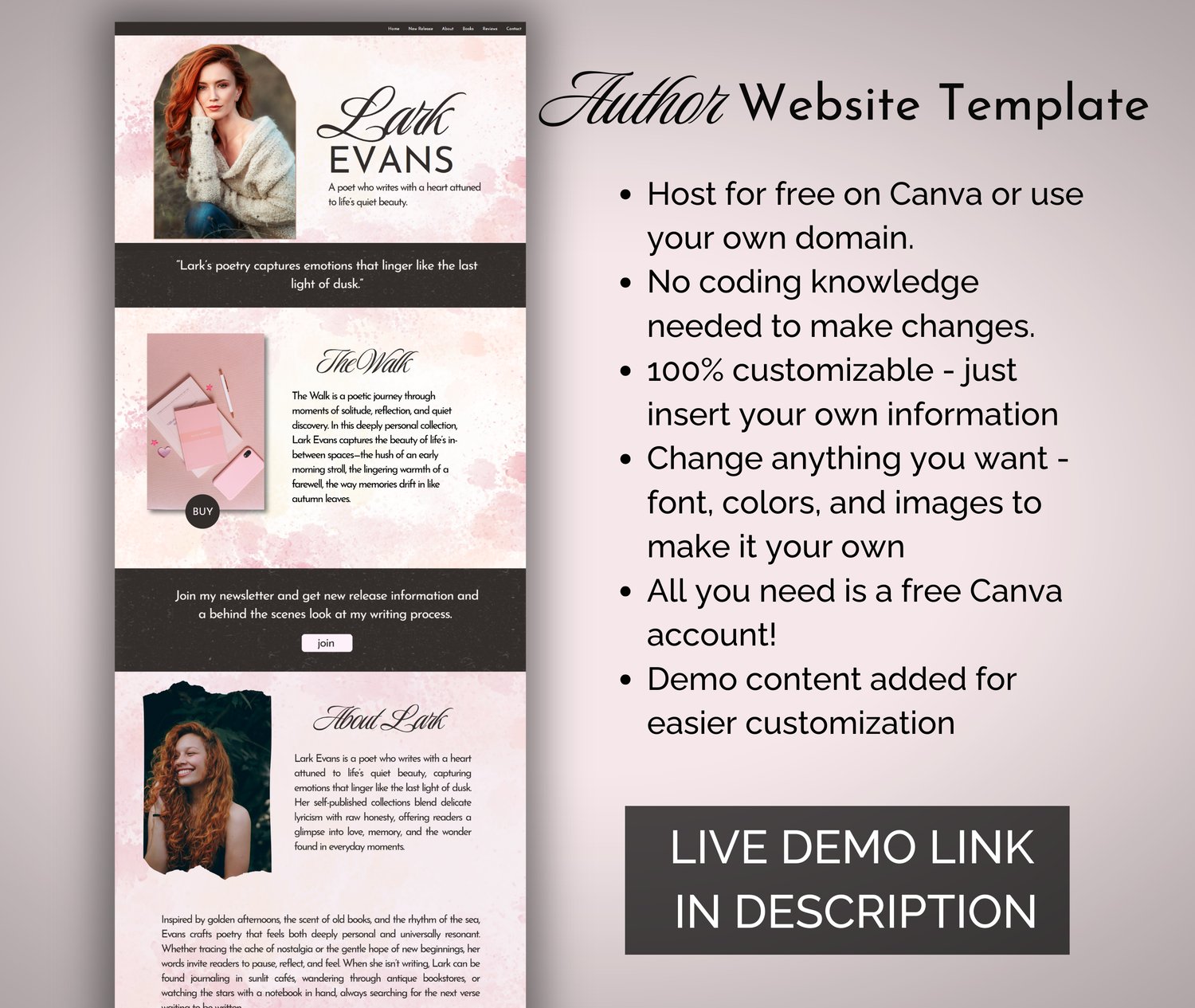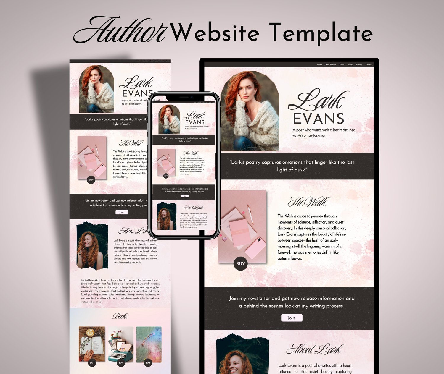 {The Lark} Elegant Author Website Canva Template, Feminine Author Portfolio, Author Landing Page, Writer Website