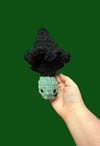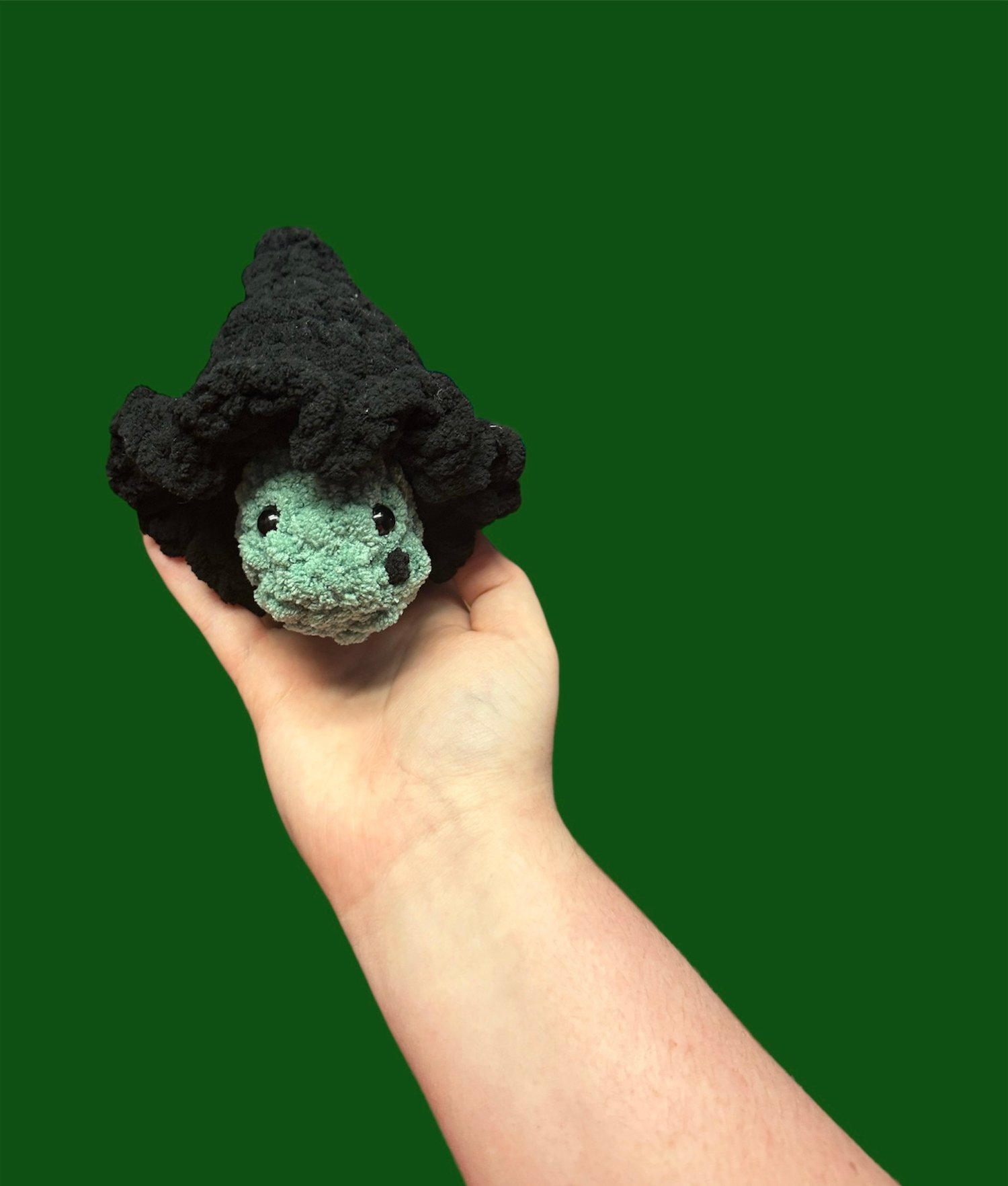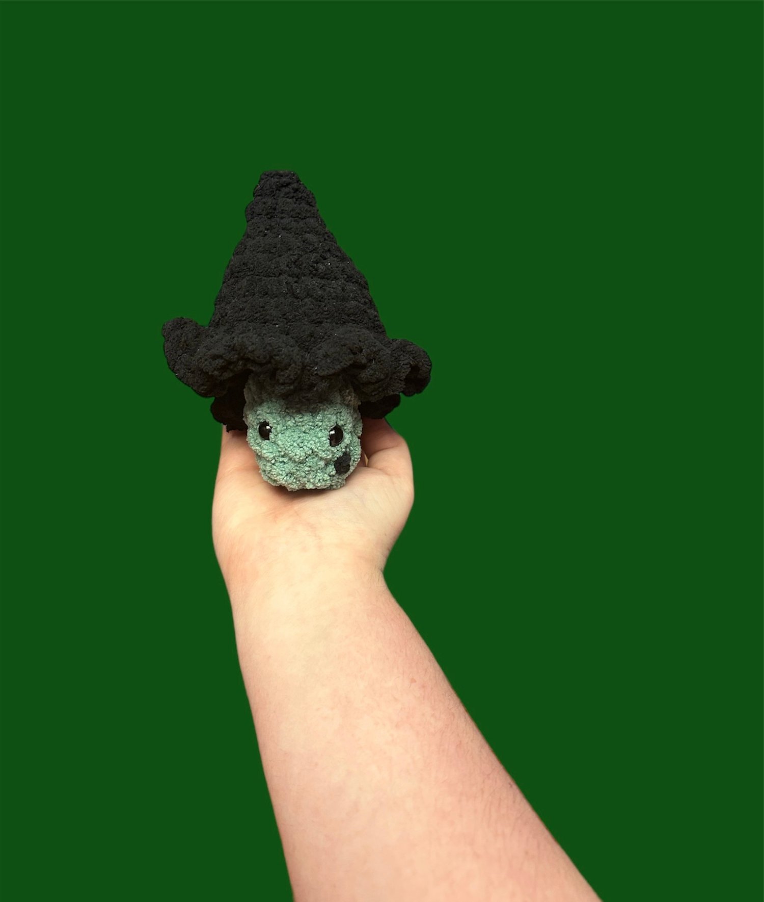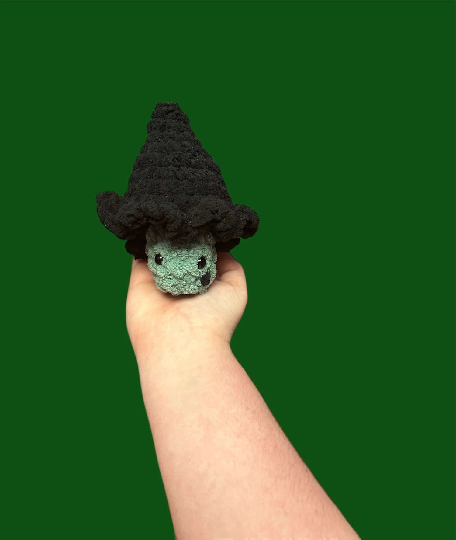 A Witch pop it, kids love playing with these and they are a perfect (and quiet!) fidget! Made with soft blanket yarn. Approximately 4” unpopped and 6” popped. A black witch hat with a green face and a black embroidered mole for extra witchy-ness.