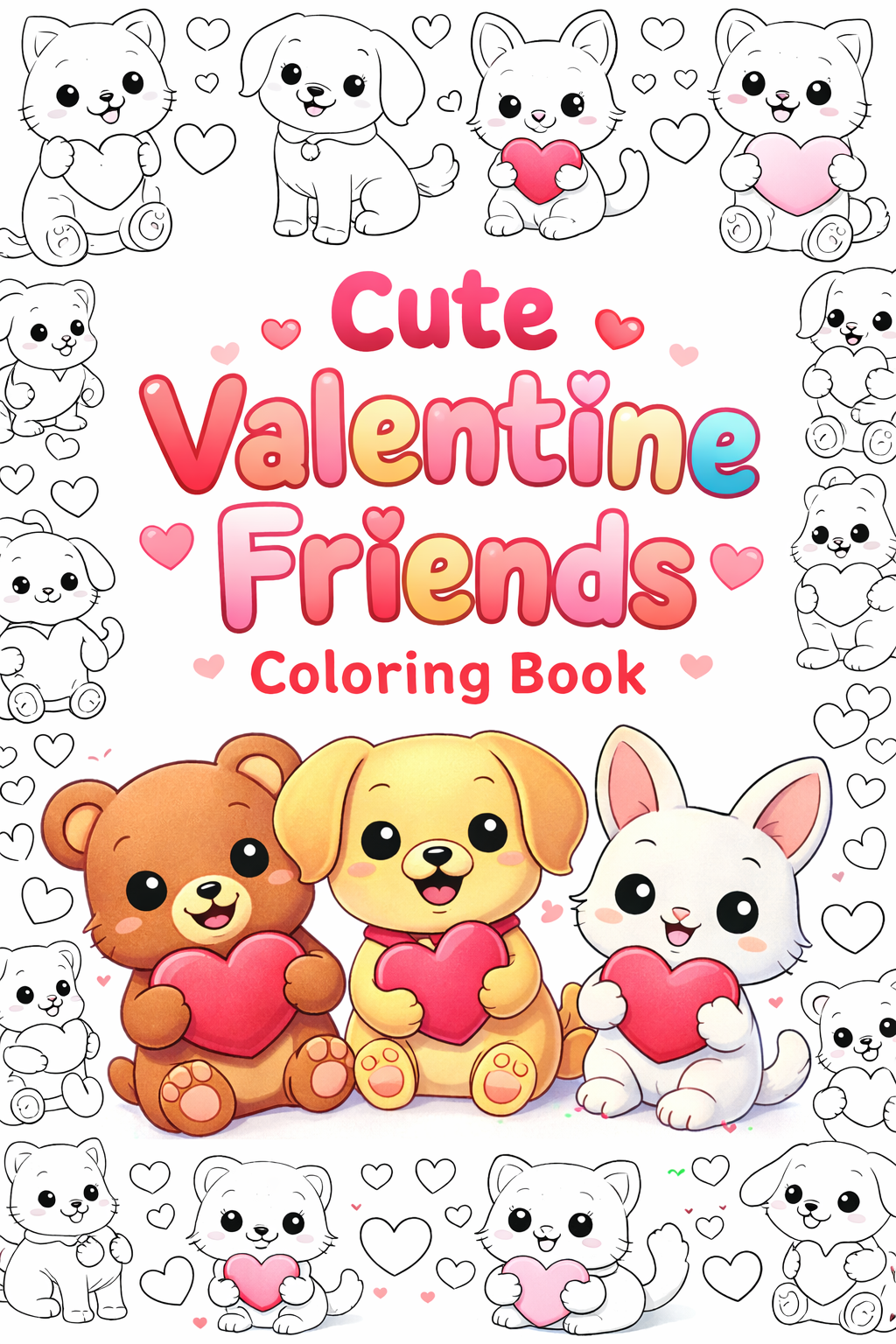 Valentine Animals Coloring Book for Kids | Cute Valentine Coloring Pages | Toddler & Preschool Activity | Printable PDF + Bonus Pages