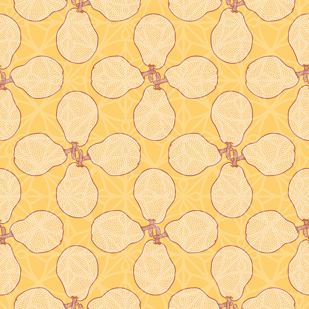 Doodle pear seamless pattern background. Cartoon yellow fruit vector illustration.