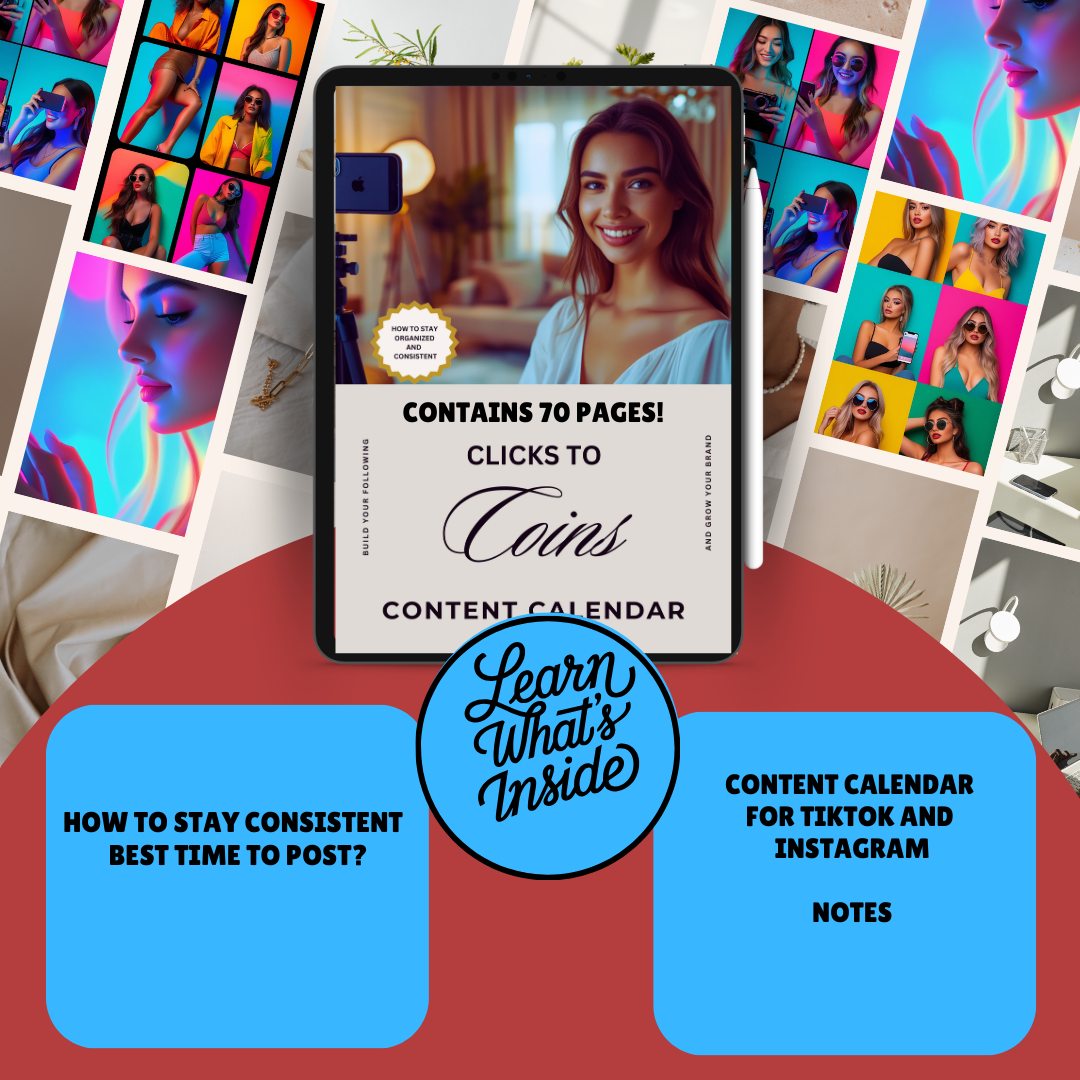✅ Clicks to Coins Content Calendar – Struggling with content ideas? This strategic planner helps you map out engaging, sales-driven content that turns clicks into cash! 70 pages