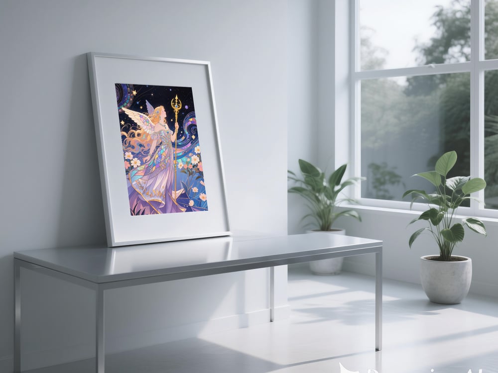 This angel art, surrounded by radiant golden light, symbolizes a powerful fusion of the "Metal element" and "Heavenly energy" in Feng Shui. Angels are considered high-dimensional protectors, offering spiritual security and uplifting energy. The golden hues represent abundance, wealth, and financial stability, making this piece an auspicious symbol of prosperity.