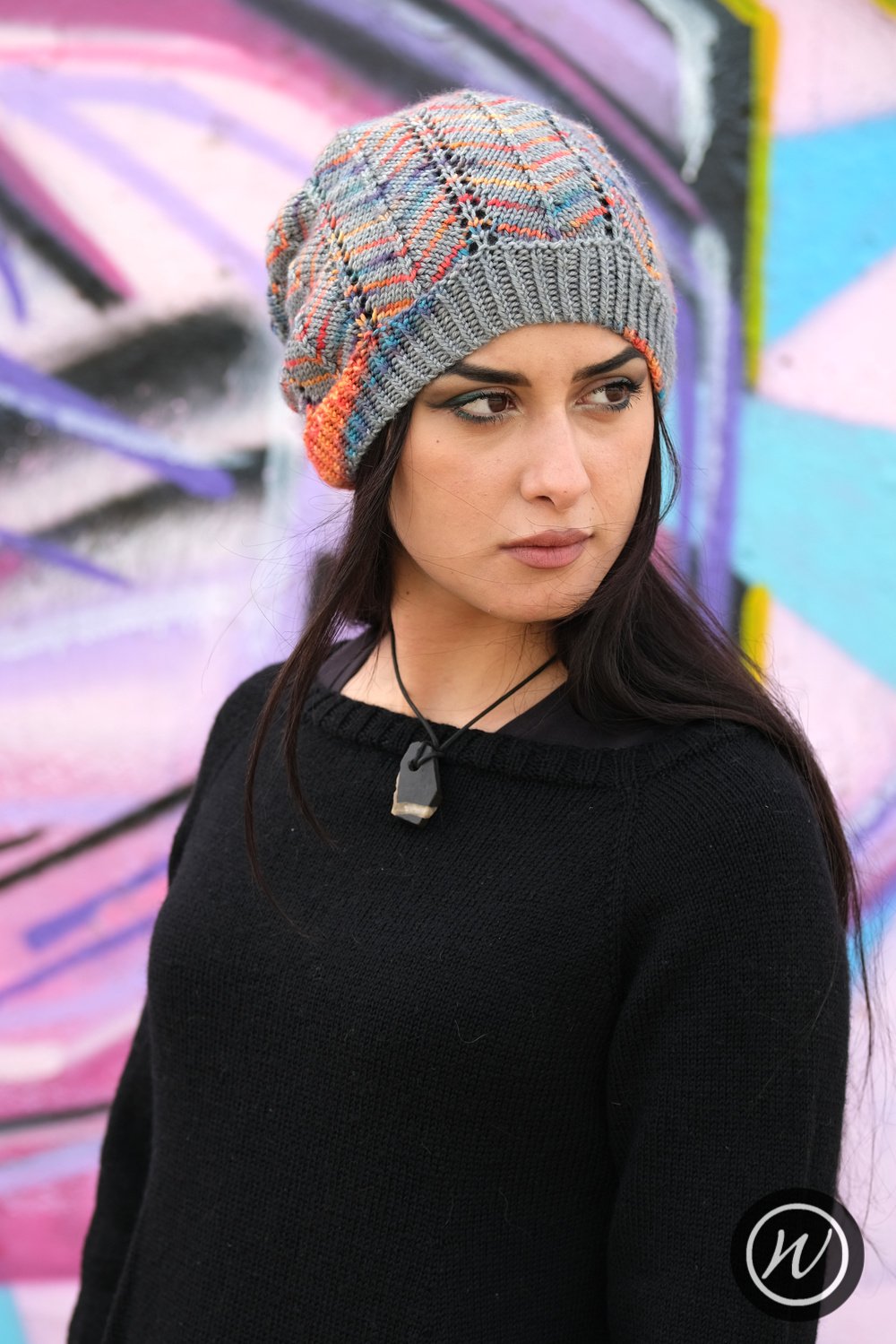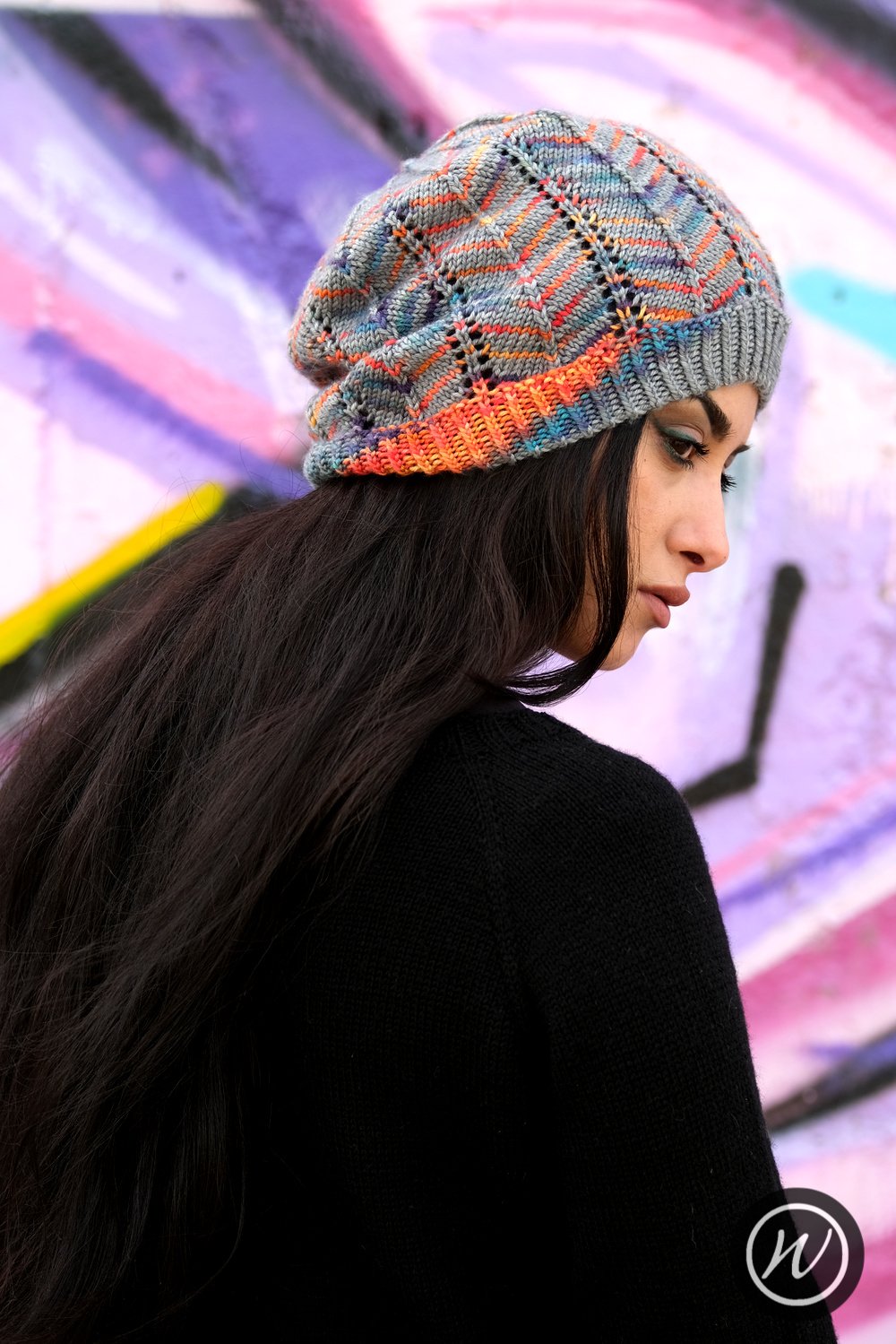 Rachis was born with hand-dyed yarn in mind. Whether it be an opinionated variegated yarn or a subdued semi-solid, the yarn comes to life as the stitches travel around this Hat.