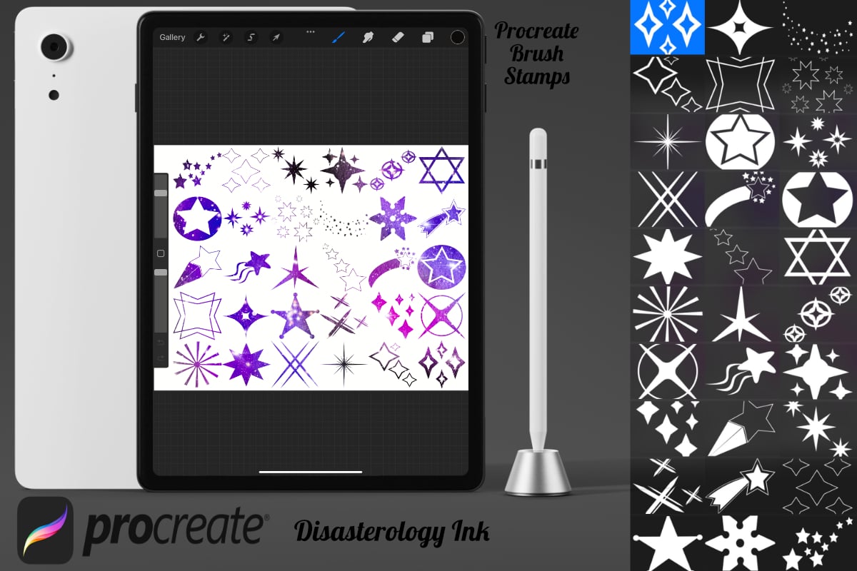 Procreate stamps save time when drawing, saving the effort of having to recreate the same thing for multiple designs and projects, save time on your design by purchasing these sparkling star brush stamps so you can utilise that time on creating more beautiful art.