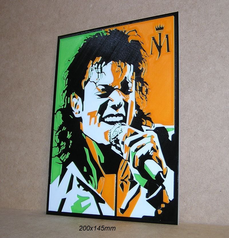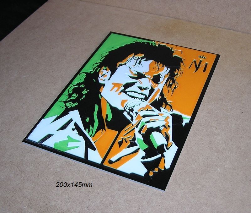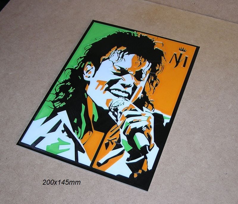Michael Jackson, Poster with logo of a music group and singers, these STL and Gcode files have been created to be printed in various colors with any FDM type printer. The color changes have been made with the Elegoo Neptune 3 Pro printer, but they can be printed on any printer.