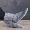 An easy sock pattern in 4ply / fingering with a simple garter column pattern. With a strong heel and tips on working the socks two-at-a-time. A perfect pattern to use with self-striping yarns.