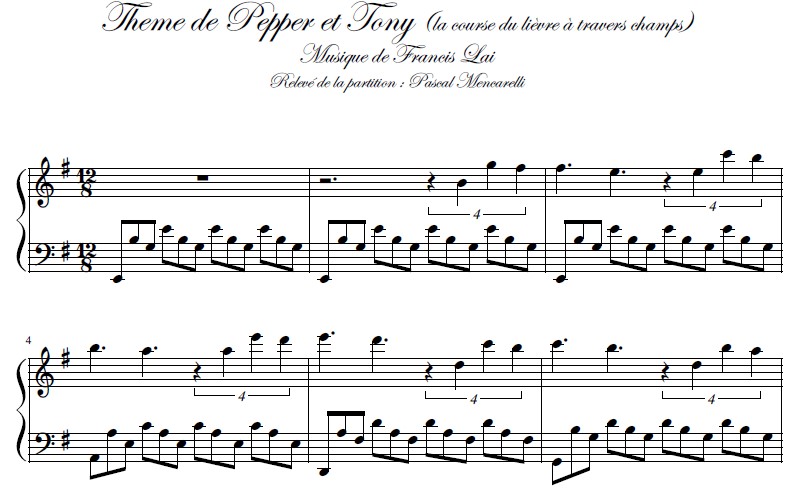 Francis Lai - La Course du Lièvre à travers les champs (Pepper et Tony) - Partition Piano