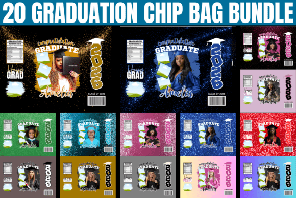 Canva editable 20 design chip bag template for grads