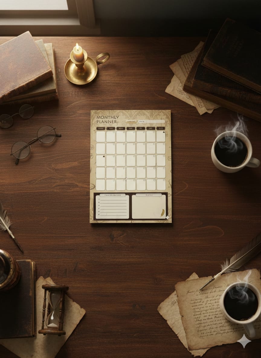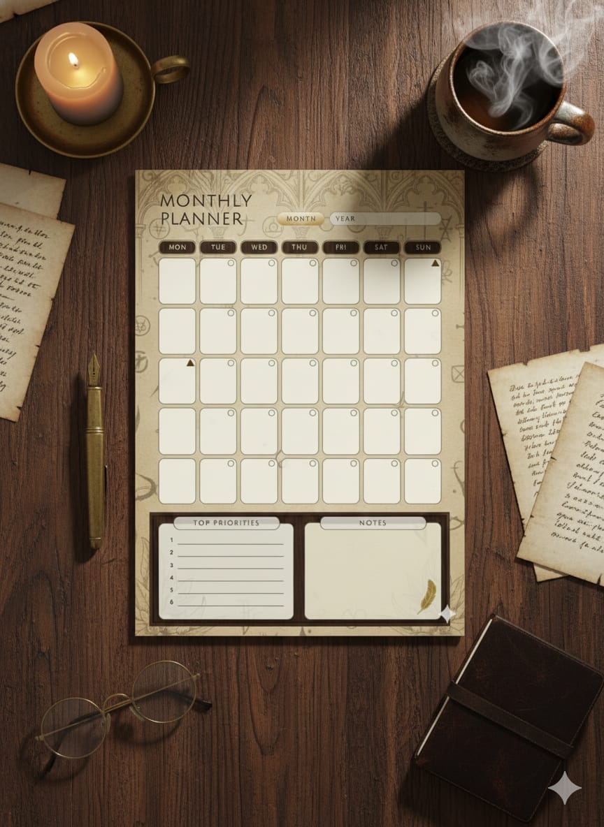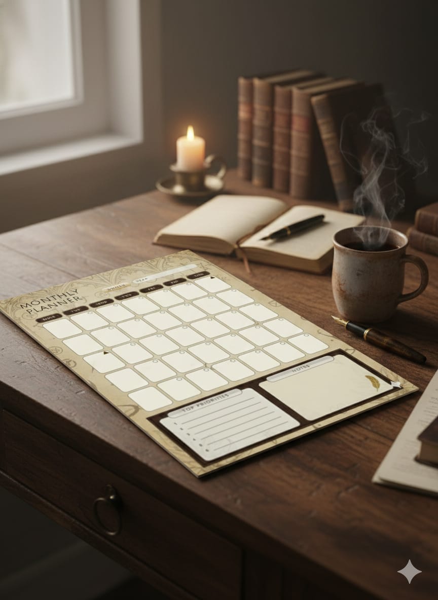 Vintage Brown Monthly Planner | A4 Printable Planner | Classic Aesthetic Monthly Organizer