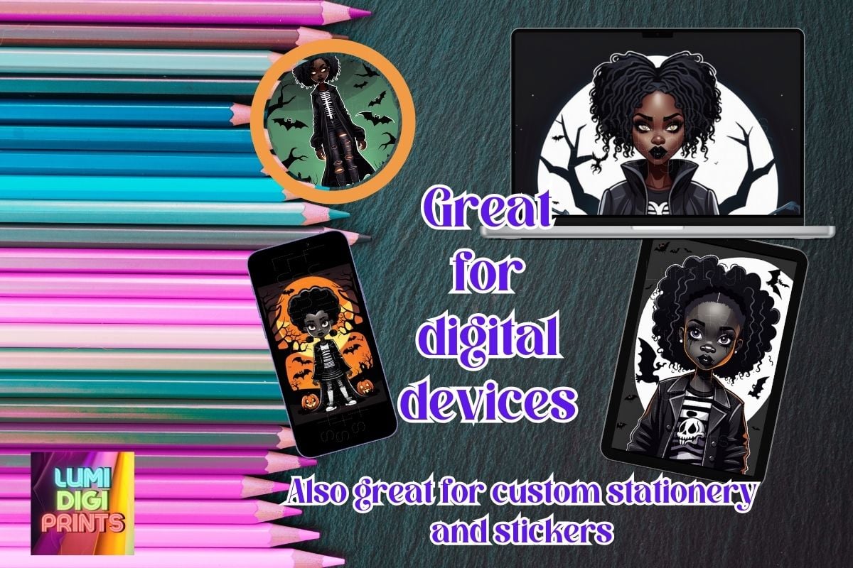 The graphics within the “HalloweenCore Gothic Black Girls” pack boast exceptional quality, showcasing sharp details and a rich color palette.