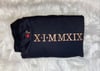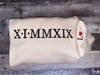 Embroidered Anniversary Date Sweatshirt with Initial and heart on the sleeve