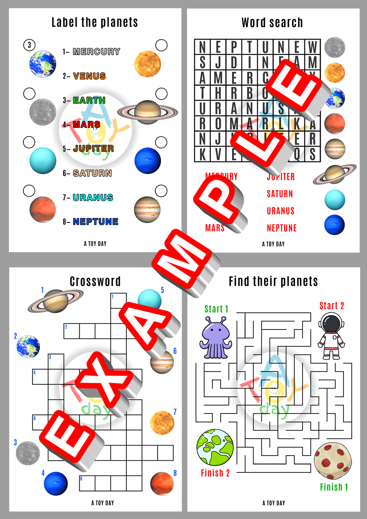 A TOY DAY, science activity, worksheet activity, planet activity, planet worksheet, planets, solar system, solar system worksheet, solar system activity, planet learning, solar system learning, science learning, planet printable, planet crossword, planet wordsearch, planet word search, science crossword, planet crossword, planets for kids, learn planets