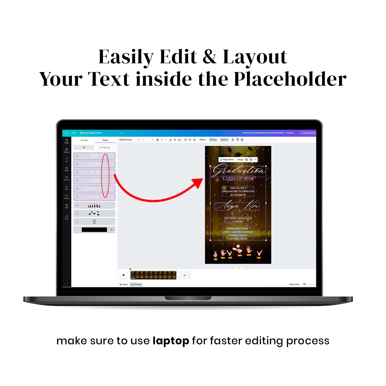 Invite your guests to your graduation event with a unique and modern touch using this special animated graduation party invitation templates. With the convenience of a video text message, it’s quick and easy to send. This template provides instant access without any need for installation.
