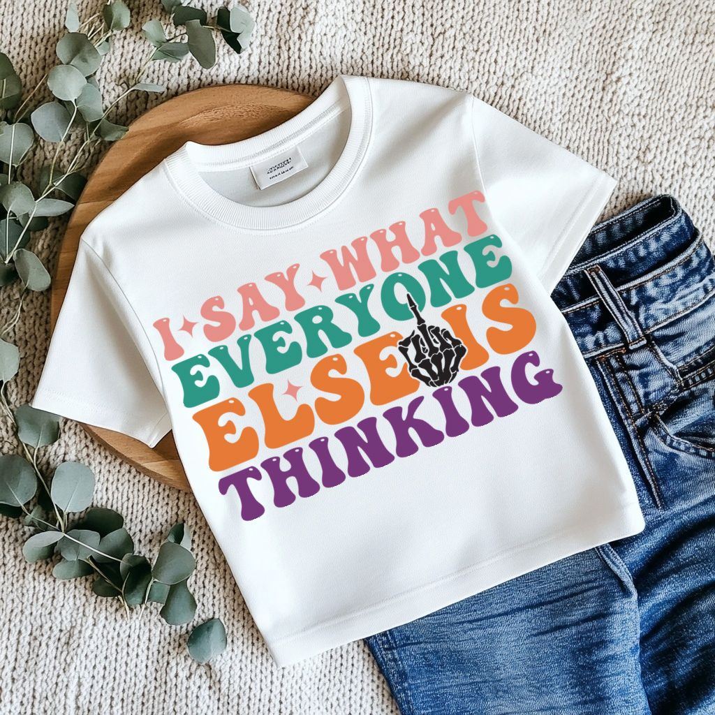 I Say What Everyone Else Is Thinking PNG | Funny Skeleton Middle Finger Quote Design | Sarcastic Retro Sublimation Digital Download
