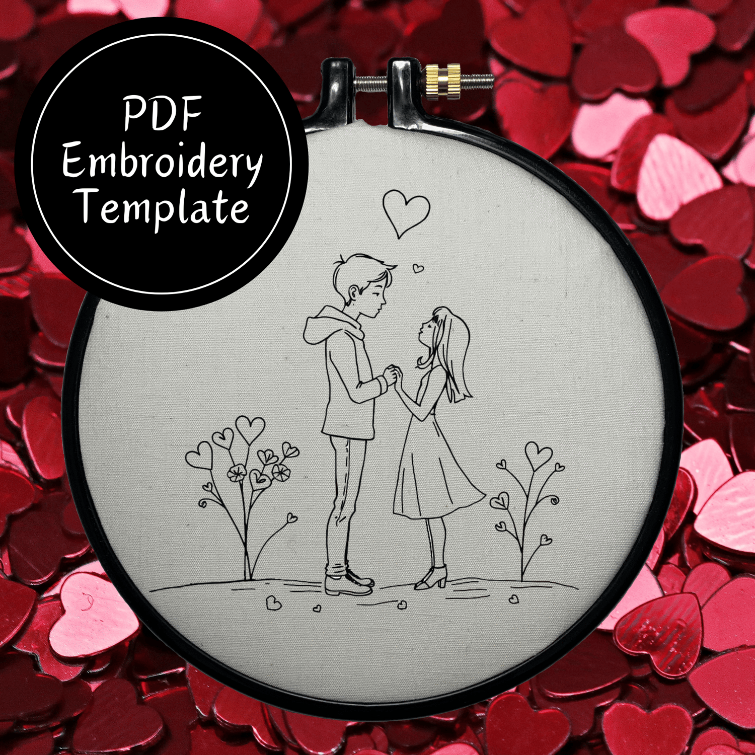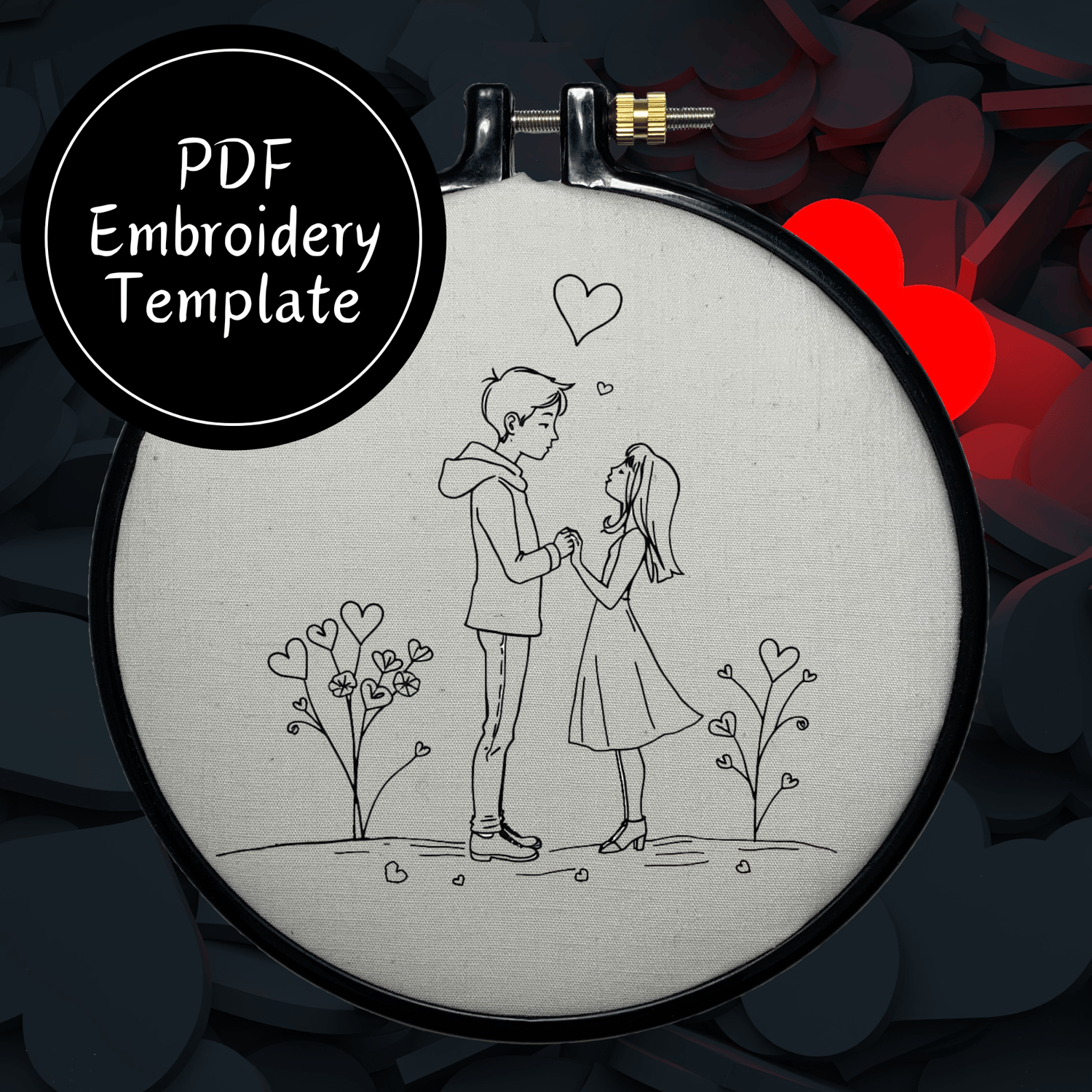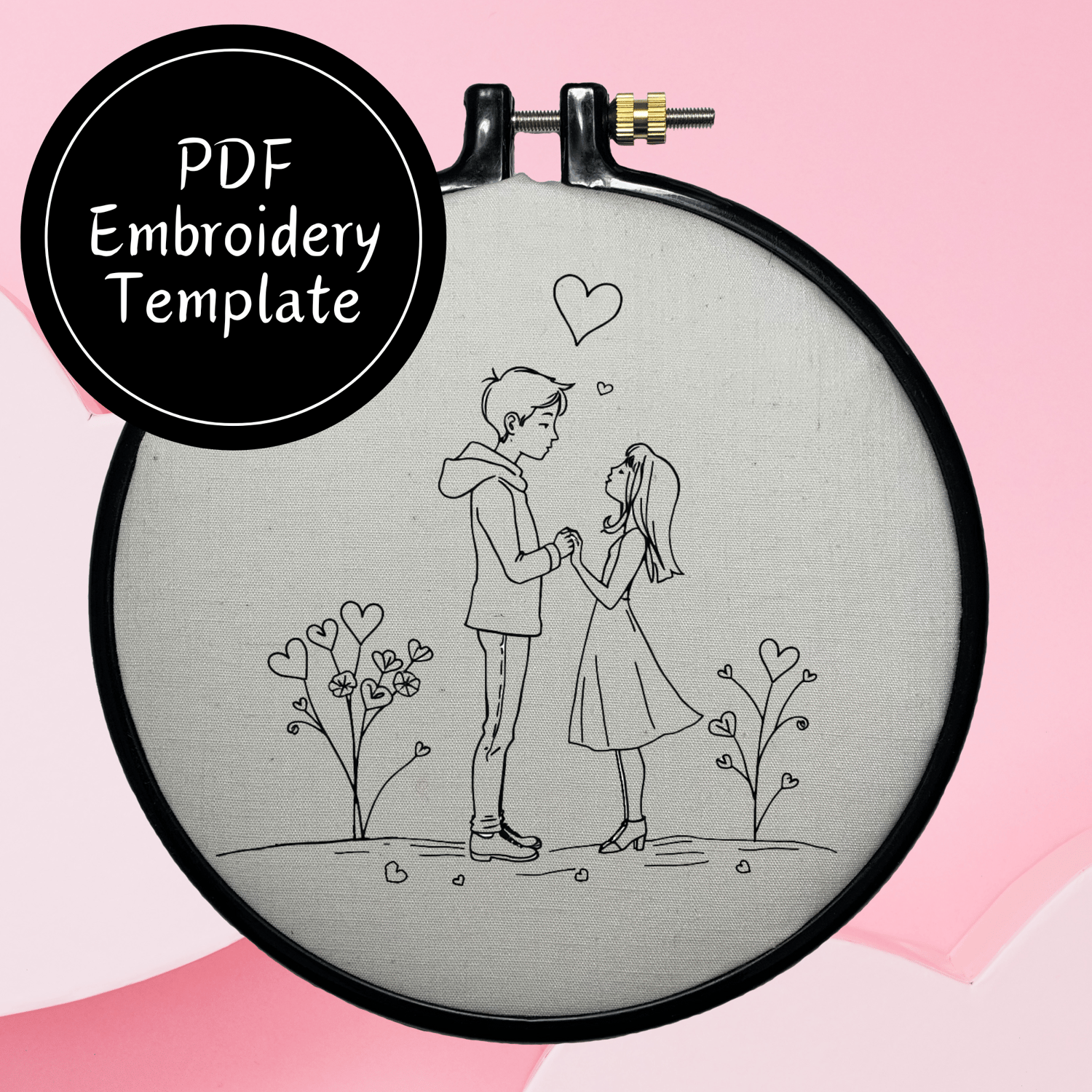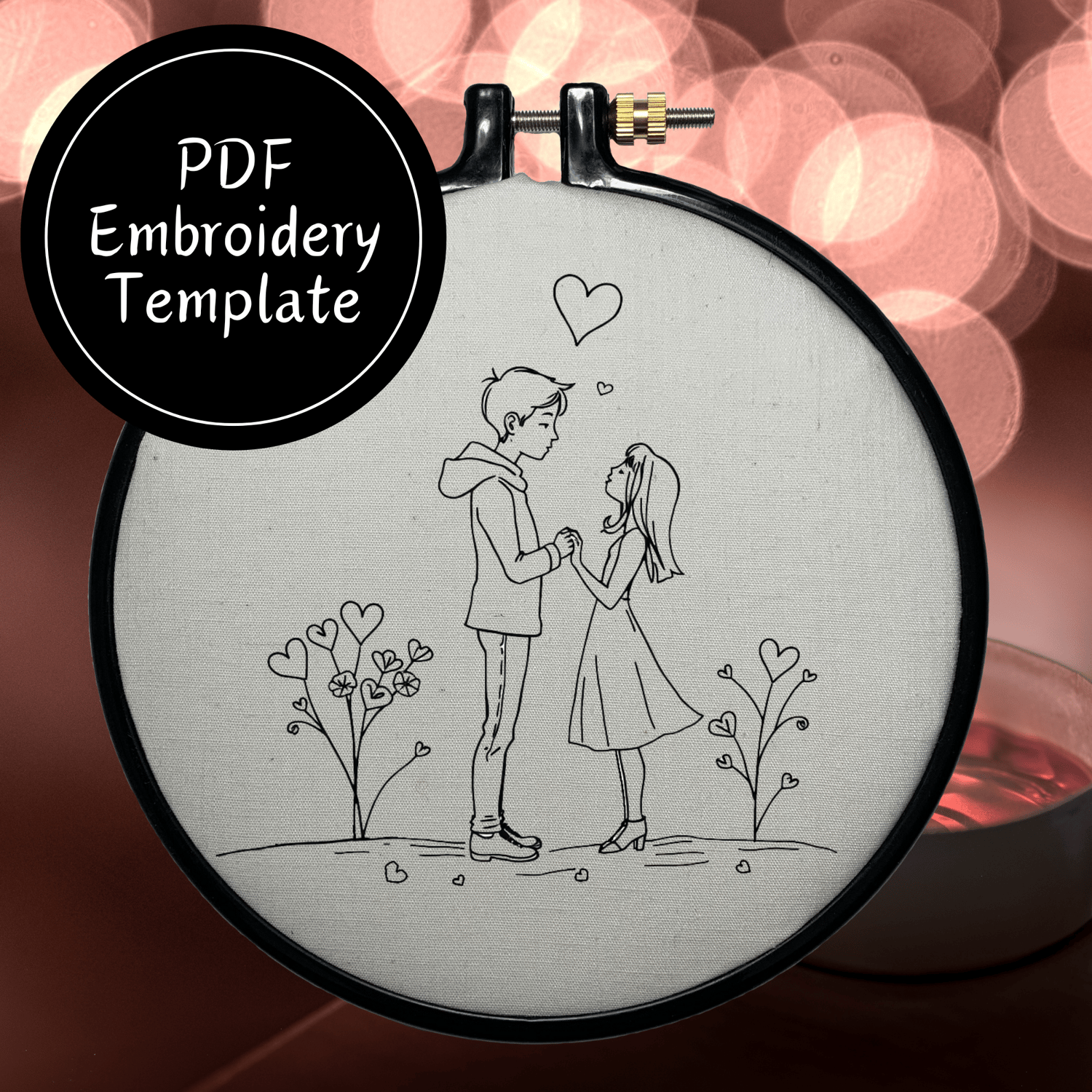 Valentine Couple Hand Embroidery Pattern DIY Embroidery