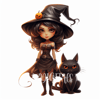 Halloween Witch Illustration Clipart - 12 High Quality PNGs - Transparent Background - Digital Download - Commercial Use