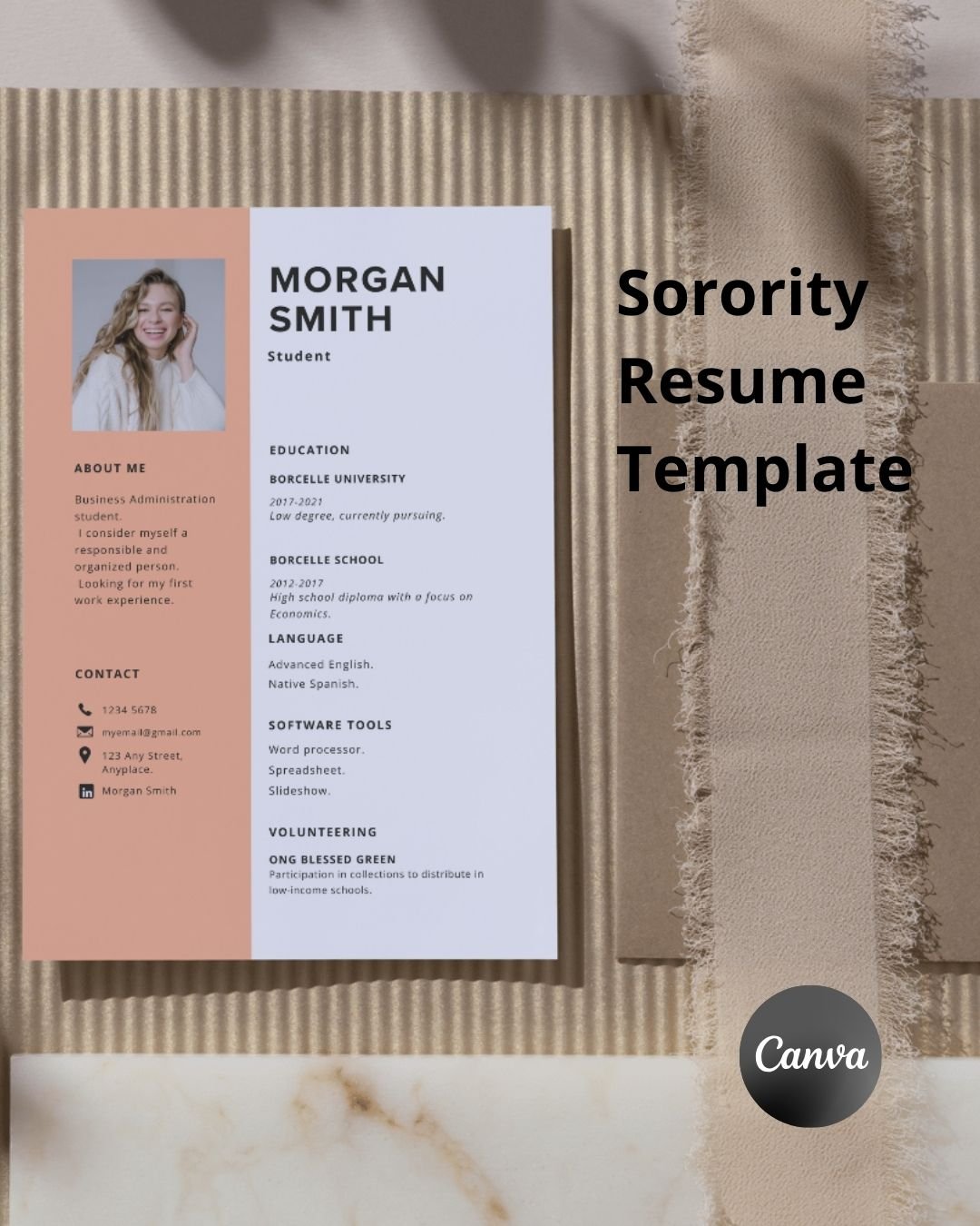 Stand out with this chic and professional resume template, designed especially for sorority applications, internships, and job hunting. Fully editable in Canva – no design skills needed!