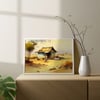 Expressive watercolor landscape painting of an Indian countryside. Subdued but high contrast colors. Suitable for any interiors and suitable as a gift for special occasions. The high-resolution image is available for instant download, with dimensions of 8400x12000 pixels and a resolution of 300 ppi.