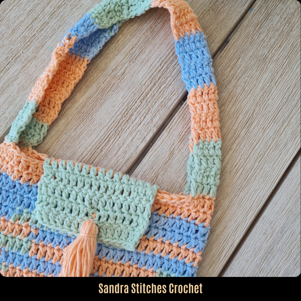 Festival Stripes Tote – Handmade Crochet Bag in Cotton Yarn | Colorful Boho Purse with Tassel | Summer Shoulder Bag by Sandra Stitches Crochet