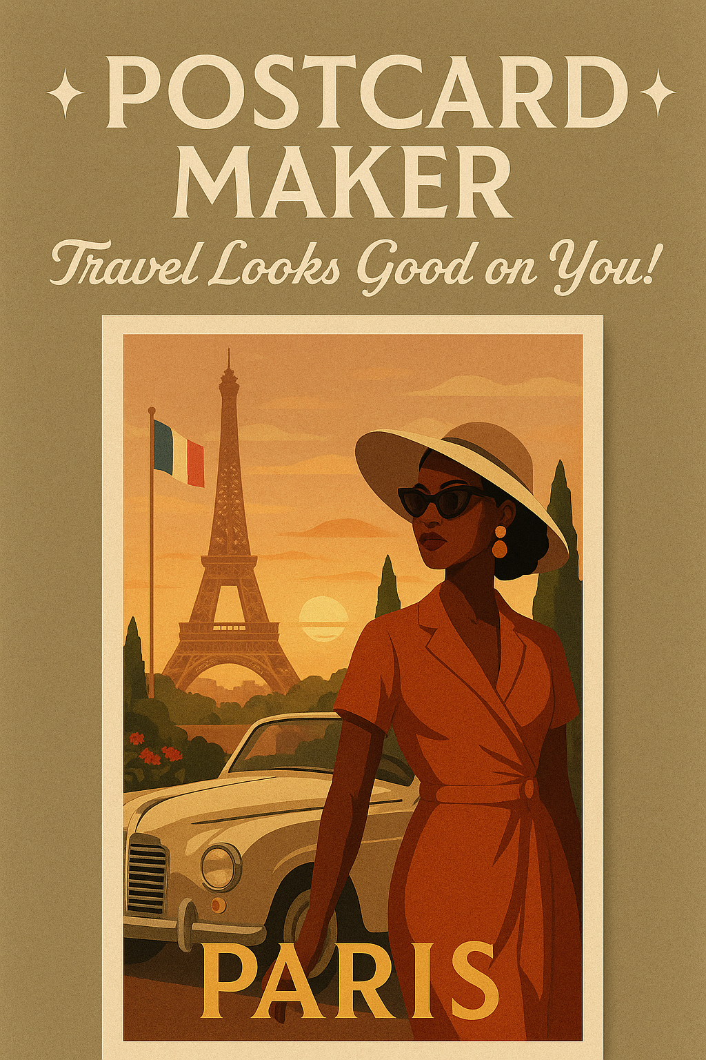 ✨POSTCARD MAKER: “Travel Looks Good on You!” — Custom Vintage Travel Art